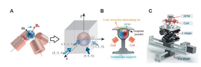 不同尺度的微机器人具有其独特的应用场景,在不同的应用场景可能需要选用最为合适的机器人,才能提高应用的成功率。例如尺度更大的机器人执行能力越大,负载能力也有很大提升,但是随着尺寸的增加,其在人体内的穿越能力急剧下降,因此难以触及体内较深的病变组织;尺度小的机器人虽然执行能力弱,负载能力小,但是具有更灵活的运动性能,可穿越更小的组织间隙,因此有望到达人体内极深的组织环境。能够在同一类机器人实现这两种策略的巧妙结合,实现1+1>2的效果,是这项科研工作最为关注的问题。受自然界中液滴行为的启发,研究人员提出了基于磁流体液滴制备具有大变形能力的机器人的想法。磁流体的本质是具有磁性的四氧化三铁纳米颗粒分散在液体中形成的稳定流体,因此既具有很好的磁控性,又具有液体的流动性。通过在外部施加磁扭矩和磁梯度力,最终实现了磁流体液滴机器人的变形以及尺度可控切换。另一方面,受杠杆原理的启发,研究人员还提出了一种新颖的磁杠杆机制,并据此设计了一个新型的复合式磁驱动系统M3RA(multiscale magnetic miniature robot actuation ),该装置集成了四个电磁体和一个球形永磁体,结构非常像中国传统文化中的龙戏珠造型。该复合式磁控系统可以利用电磁体产生的微弱背景磁场,转动永磁体产生的强大目标磁场。因此该系统可以为机器人提供强大的磁场梯度力和磁扭矩,可同时兼容微米到厘米尺度磁液滴机器人的运动控制,使得微型机器人的跨尺度控制成为可能。该系统结构非常紧凑,并且与传统磁控线圈的封闭结构不同,M3RA具有典型的半开放式结构,能够更好地贴近操作对象而不用将整个操作对象纳入工作空间当中。