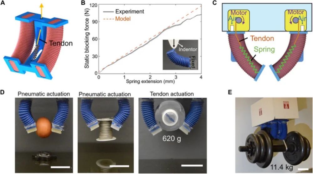 图3 可应用于抓取和提取物体的柔性机器人 注:摘自《National Science Foundation》 |