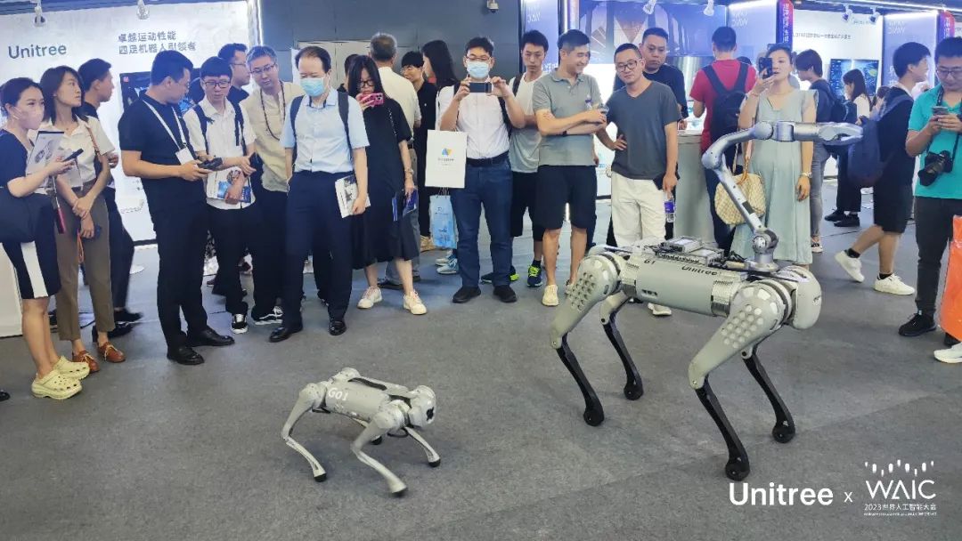 现场,宇树的工业级四足机器人B1、灵巧机械臂Z1和消费级四足机器人Go1,吸引了众多参会观众的关注。这些机器人的展示为大会注入了更多的活力和亮点,展示了中国自主研发的机器人在人工智能技术领域取得的成果和未来的发展前景。据了解,宇树从2017年就开始推进高性能四足机器人的行业落地应用,被广泛应用在工业、农业领域,以及特定的安防巡检、勘测探索、公共救援、医疗防疫陪护等行业中。行业端,宇树推出巡检解决方案、消防解决方案等,根据不同行业需求配置多种不同的传感器,依靠其长续航、高负载、强地形适应能力的特点进一步赋能行业应用。B1工业四足机器人搭载气体传感、温度传感、工业相机、3D雷达等外设,实现多维感知和强劲算力,帮助快速识别环境风险,检测放射性物质等,提升作业精确率和效率。B1还可搭载自研灵巧机械臂Z1,完成开关门、抓取重物等任务,并可应用于复杂多变的工作环境中,展示了宇树在机器人技术领域的领先地位和创新成就。消费端,宇树每年会循序渐进地添加一些智能化、好玩的AI交互等功能,为消费者提供创新的体验。宇树在算法领域拥有多年积淀,不断刷新着消费级和专业级产品的创新体验。正如宇树此次大会展出的【伴随仿生机器人】Go1,这是人类科技史上首款真正走入大众生活的移动机器人。最高奔跑速度达4.7m/s(17Km/h),打破了近似规格四足机器人最快奔跑世界纪录。Go1广泛应用于陪跑、散步、兴趣教育和表演等生活场景,并曾参加2022冬奥会开幕式、2023 Super Bowl赛前表演,受到央视新闻联播、BBC等知名媒体采访报道。未来还将开发更多实用功能,如看家护院、守护家人,为人们提供更多便利。经过多年的研发积累,宇树在四足机器人的运动、感知等多个产品性能方面处于行业领先地位,能够满足不同行业用户的需求。宇树在工业和消费级产品上分别设置独立的生产线,以确保产品质量。对于行业客户而言,宇树的服务优势体现在技术前瞻性、产品前瞻性、产业敏感度和市场敏感度方面。宇树全球最早开创了低成本电驱动方案并实现市场化,在产品营收、出货量方面处于全球领先地位,同时在核心零部件、算法制造能力、销售渠道等方面也具有明显优势。作为本届世界人工智能大会的重点参展企业,宇树展示了多款自主研发的机器人,充分展示了其在机器人领域的技术实力和创新能力。正如王兴兴在会上提到的,“未来,可能出现完全独立于整个世界的、分布式的多个新兴经济体;生物人类和智能AIA将会共存,构成新的生物多样性;智能AIA会脱离原生物人类的原始肉体欲望,诞生新的欲望,这过程中会有不可控性;矿、能源、算力将是最重要的关键性资源。”我们相信,宇树将继续坚持以技术创新为核心,不断推动机器人产业的跨越式发展!