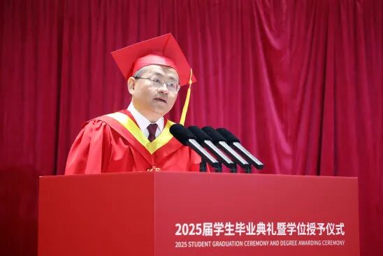 上海理工大学毕业典礼上,"行者二号"机器人亮相。 6月16日,上海理工大学2025届学生毕业典礼暨学位授予仪式举行,8000余名毕业生与老师、家长共同见证这一盛典。 典礼现场,上理工健康学院教师代表李清都带来的团队成员——“行者二号”人形机器人,以独特的方式向即将踏上人生新征程的毕业生们“打招呼”,成为典礼上最令人瞩目的科技亮点。 “当‘行者二号’在全球首个人形机器人半程马拉松赛中拿下季军,在国际全地形挑战赛勇夺冠军时,机械腿摆动的轨迹里,藏着你们多少个凌晨时光调试代码的执着;仿生关节的震颤中,凝结着你们上百次推翻设计的勇气。这些成绩不仅仅是一次次技术的突破,更像一场特殊的‘人生马拉松’预演。”面对即将启程的毕业生,李清都以“半杯哲学”为寄语,希望毕业生们看自己时多看到未填满的可能,看他人时多发现半杯满的光芒,以勤奋完善自我,以乐观拥抱时代,以包容影响世界。 国家奖学金获得者、上海市优秀毕业生机械工程学院博士毕业生钱广俊作为毕业生代表,分享他参与国家重点研发计划、赴比亚迪等企业实地攻关的经历,以“天赋决定起点,努力丈量未来”的信念,号召同学们“用科研匠心服务制造强国梦想”。他以五年硕博连读经历,展现上理“产教融合”的育人特色。 “四年前,我以为理工科只有冰冷的公式,直到导师深夜实验室的灯照亮了数据模型的温度。”中国国际大学生创新大赛(2024)金奖、首届全国大学生职业规划大赛铜奖获得者光电学院本科生石悦言作为毕业生代表,分享从“代码报错手忙脚乱”到带领团队斩获创新创业项目的蜕变,她以“理工的浪漫是于混沌中寻找秩序”诠释上理“信义勤爱 思学志远”的校训精神。 校友代表、能动学院热能工程专业2010届毕业生,上海仪器仪表自控系统检验测试所有限公司党总支书记、总经理、正高级工程师宋延勇,结合自己的职场经历和科研道路,为学弟学妹们送上了真挚的寄语。他勉励大家要保持进取心、恪守责任心、拥有宽容心、常怀感恩心、心存敬畏心,用这“五颗心”去支撑未来的职业生涯。宋延勇作为“全国劳动模范”,也带领团队突破高端仪器仪表“卡脖子”技术,让“中国精造”闪耀世界舞台。 校长朱新远以《理润匠心,筑梦未来》为题发表毕业致辞,为毕业生们送上深情寄语与殷切期望。朱新远以“匠心”为钥,与毕业生共勉未来之路。他强调,“匠心”在于精益求精的执着追求。上理人自建校之初便深植“实业救国”“工业报国”的基因,培养了大批工程型、创新性、国际化的人才。他希望同学们在未来能够以精益求精的态度打磨自己,把每一件平凡的小事做到极致,铸就属于自己的“硬核”未来。“匠心”在于勇于创新的锐意突破。他希望同学们打破知识藩篱,以跨界融合的系统思维,拥抱人工智能等新兴技术,用创新成果服务社会、造福人民。“匠心”在于家国情怀的深厚根基,上理学子要以家国情怀为底色,自觉传承上理精神,为实现中华民族伟大复兴贡献上理力量。“毕业不是终点,而是与母校共同启航的壮阔起点。”朱新远勉励2025届毕业生们。无论未来走向何方、攀登多高,母校上海理工大学也将永远站在毕业生们的身后,成为他们最坚实的支撑和最温暖的港湾。 |