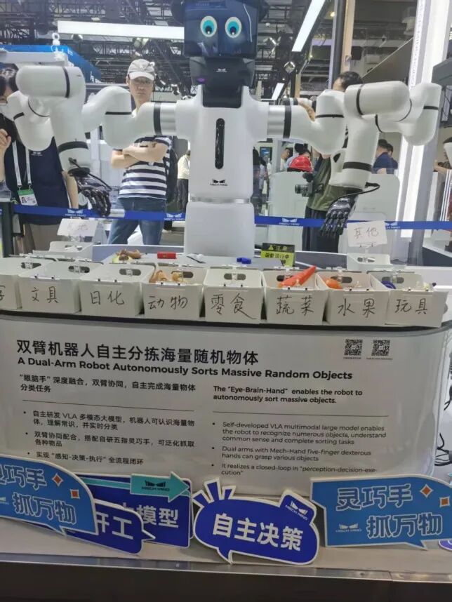 中国机器人出海跑出加速度 中国是全球最大机器人生产国据中国基金报,7月26日,“2025世界人工智能大会暨人工智能全球治理高级别会议”(WAIC 2025)在沪开幕。 当日,中国政府倡议成立世界人工智能合作组织。这是中方坚持践行多边主义、推动共商共建共享全球治理的重要举措,也是中方响应全球南方呼声、助力弥合数字和智能鸿沟、促进人工智能向善普惠发展的实际行动。初步考虑该组织总部设在上海。 据了解,今年大会展览面积首次突破7万平方米,吸引了800余家企业参展,集中展示3000余项前沿展品及100余款“全球首发”“中国首秀”新品,规模创历届之最。 基金君来到上海世博展览馆,现场非常热闹。今年人工智能大会比往年更加火爆,观众都在排队入场。 各种机器人引爆全场 今年最火的主题,莫过于机器人、具身智能,据说本届展会展示了60款以上智能机器人。 在展馆的二楼,宇树科技展台被里三层外三层包围。宇树机器人惊艳亮相,包括格斗家G1的炫酷对战、硬汉B2的硬核展示、萌宠Go2的可爱互动,配合云端助阵的R1新品,共同呈现一场人机共生的科技盛宴。 现场身高1.32米、重35公斤的G1格斗机器人凭借29个灵活关节和智能平衡算法,在展台演绎“武林争霸”——行云流水的拳击连招、干净利落的回旋踢,即使被“偷袭”也能迅速调整平衡。当其意外摔倒时,动态平衡系统仅用数秒便完成自主起身,裁判读秒手势未落已恢复战斗姿态,活脱脱一个“AI版李小龙”。 此次大会,智元机器人与百事可乐联合发布的第二代人形机器人“百事酷宝”亮相。据了解,今年智元机器人展示的产品,以及产品背后的技术路线,揭示了一个重要趋势:我国机器人产业正在经历从“单点突破”到 “系统能力”的跃迁。 还有一些人形机器人,不仅可以在现场跳舞,还能够主动和观众打招呼,能秒答各类问题,支持随时打断、上下文追踪,也能即兴表演喜怒哀乐。 梅卡曼德机器人展台,各具功能的多款机器人展出,比如斯坦德具身智能机器人DARWIN 搭配梅卡曼德通用机器人“眼脑手”,自主完成货架取货任务。 双臂机器人“眼脑手”深度融合,双臂协同,自主完成海量物体分类任务。 还有机器人化身“叠衣劳模”,其具备类人的规划、推理和决策能力,可自主高效执行长序列柔性复杂任务,可精细操作衣物等易产生非刚性形变的柔软物体。 人工智能产业链全亮相 本次大会,华为首次线下展出昇腾384超节点,即Atlas 900 A3 SuperPoD,该产品基于超节点架构,通过总线技术实现384个NPU之间的大带宽低时延互联,解决集群内计算、存储等各资源之间的通信瓶颈。通过系统工程的优化,实现资源的高效调度,让超节点像一台计算机一样工作。 在百度的展位,基金君看到了百度慧播星发布的新一代数字人技术NOVA,据说该技术曾支撑罗永浩数字人直播间创下5500万元GMV。其依托文心大模型4.5Turbo的大师级剧本模式,能生成优质脚本并驱动多模态协同,让数字人在直播间实现形神音容的高度匹配,预计该技术将于10月向全行业开放。 阿里巴巴发布了首款自研AI眼镜——夸克AI眼镜的技术研发进展。这是阿里在AI领域的又一次战略性下注,代表了其AI to C战略正从软件领域延伸至多形态硬件。作为阿里巴巴AI能力与生态协同的集大成者,夸克AI眼镜深度融合了阿里和支付宝生态:具备通义千问大模型和夸克最新AI能力,支持高德近眼导航、支付宝“看一下支付”、淘宝比价、飞猪商旅提醒等丰富场景。夸克AI眼镜不仅具备通话、音乐、翻译、会议纪要等主流功能,更是在AI交互、佩戴、显示与影像、续航等方面实现突破。 国产GPU四小龙之一的摩尔线程,此次展示了以国产全功能GPU为底座的通用加速计算平台、新一代夸娥智算集群方案及各行业应用方案,呈现其在专业图形渲染、大模型训练与推理、具身智能、物理仿真、AI for Science(AI4S)等领域中的技术突破与应用价值。  |