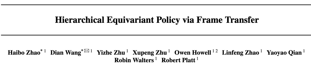 在机器人智能操作领域,数据稀缺和泛化难题长期困扰着AI的落地应用。 大多数方法或依赖大量数据,或在环境稍有变化时表现失灵。 如何让AI像人一样,仅凭少量演示,就能稳健适应复杂多变的真实场景? 美国东北大学和波士顿动力RAI团队的研究人员提出HEP(Hierarchical Equivariant Policy via Frame?Transfer)框架,首创「坐标系转移接口」,将高层策略的泛化能力与低层策略的灵活性无缝耦合,实现「少数据」下的高效学习与强泛化。 论文地址:https://openreview.net/pdf?id=nAv5ketrHq 项目代码:https://codemasterzhao.github.io/HierEquiPo.github.io/ 坐标系转移接口实现了高层泛化能力与低层灵活性的无缝融合,为机器人少样本、高鲁棒、多场景泛化部署开辟了全新路径。 1. 极简高效的分层结构——高层模块负责全局子目标(keypose)预测,低层模块基于局部坐标自主优化轨迹; 2. 空间对称性自然泛化——在T(3)(平移)与SO(2)(平面旋转)群下均保持等变性,显著降低对示例数量的依赖; 3. 创新型体素编码器——采用堆叠体素(Stacked?Voxel)+SO(2)等变网络,高效编码三维视觉信息,兼顾细节与计算速度。 HEP框架由三部分组成: 1. 高层策略:它首先读取机器人感知到的三维点云信息,然后预测出一个粗略的目标位置,也就是「关键姿态」。 2. 坐标系转移接口:接着,它会把全局点云和上述关键姿态一起,转换到一个以关键姿态为中心的局部坐标系里,让后续处理都基于这个「局部视角」进行。 3. 低层策略:最后,低层策略在这个局部坐标系中,通过对体素化后的三维视觉特征进行等变扩散运算,生成连续、精细的机器人动作轨迹 开放/闭环兼容:同一接口支持一次性输出(Open?loop)与逐步反馈(Closed?loop)两种控制模式; 轻量高效:高层仅需预测平移向量,降低计算与学习难度,增强泛化性;低层专注细节,通过坐标系转移接口从高层强化泛化性。 设计思路:高层策略给出任务的「参考坐标」,低层策略在此基础上自主优化执行细节。 这样的设计不仅释放了低层的灵活性,也将高层的泛化能力、抗干扰性自洽地传递到底层,实现了「泛化性与鲁棒性」的一体式提升。 优势包括: 灵活性,低层可在局部坐标系内自主调整执行细节; 泛化性,高层对全局变换的适应能力,通过坐标系转移接口无损传递到低层; 简化高层,只需预测平移,避免在高维SE(3)空间中做精确规划。 T(3)等变示意图 SO(2)等变示意图 当旋转和沿xyz轴的平移发生时,模型预测的轨迹也能确保发生相应的平移和旋转 高层:使用SO(2)?等变3D?U-Net对离散化平移概率图进行预测,因此拥有SO(2)?等变性和T(3)等变性 低层:基于堆叠体素编码器提取局部特征,结合SO(2)?等变扩散策略,因此拥有SO(2)等变性 系统:在论文附录中给出完整的等变性证明(Proposition?4.2&4.3)通过坐标系转换,SO(2)等变性被保存,T(3)等变性可以从高层传递到低层,使得整个系统拥有SO(2)XT(3)的等变性 原理:将点云按体素网格分组,以等变PointNet聚合每个体素内点的特征,组成c×D×H×W的等变体素图。 优势包括: 细节保留,相比传统下采样,更好保留局部几何信息; 计算友好,点云?卷积混合结构,平衡速度与精度; 等变性,理论保证在T(3)×SO(2)变换下保持一致性。 数据集:30个RLBench任务,每个任务用100条演示训练。 对比基线:3D?Diffuser?Actor、Chained?Diffuser、Equivariant?Diffusion?Policy。 开环结果:HEP在30任务中有28项胜出,平均提升+10%。 闭环结果:在10个长程任务上,HEP平均提升+23%,显著优于单级方法。 去除等变结构:性能降24%; 去除坐标系转移:性能降16%; 去除堆叠体素:性能降10%; 充分验证各模块贡献。 在真实机器人上,HEP分层框架仅用30条演示数据,就学会了包括移锅盖、加清洁剂、擦洗等多步协作的鲁棒「洗锅」任务,明显优于非分层方法。 理论保障:证明了坐标系转移接口能将高层对空间变化的适应能力无损传递至低层,策略整体更易扩展至新场景。 在Pick&Place任务上,HEP仅凭一次演示,低层扩散模型即可实现1-shot泛化学习,显著提升了数据效率。 在环境变化和引入无关物体的扰动测试下,HEP成功率较传统方法提升高达60%。 接口设计带来未来扩展可能 坐标系转移接口对低层策略仅施加软约束,这不仅保证了灵活性,也为未来引入VLM或Cross-embodiment等多模态、跨平台高层策略作为决策规划器提供了天然接口。  |