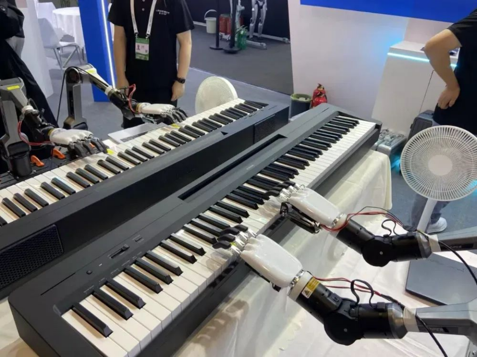 灵心巧手的Linker Hand灵巧手以高自由度和高精准度著称,现场展示了灵巧手根据预设程序,弹奏一曲电子琴。