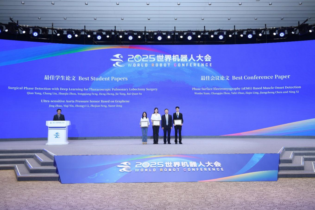 8月12日,为期5天的2025世界机器人大会在京落下帷幕。从行业应用的精准赋能,到生活场景的智慧融入;从人形机器人的灵动跃迁,到具身智能的革新突破。这场以“让机器人更智慧,让具身体更智能”为主题的国际盛会,通过高水平的论坛研讨、前沿的展览展示、激烈的赛事竞技以及丰富的配套活动,全方位、多维度呈现了全球机器人领域的最新技术突破、创新应用场景与未来发展趋势,为全球机器人产业高质量发展注入澎湃动能。 全国政协常委、致公党中央副主席、全国妇联副主席、工业和信息化部原副部长、中国电子学会理事长徐晓兰,世界机器人合作组织理事长、中国科学院院士、中国科学院自动化研究所多模态人工智能系统全国重点实验室主任乔红,中国电子学会理事会党委书记、中国人形机器人百人会理事长张峰,中国工程院外籍院士、德国工程院院士张建伟,中国电子学会副理事长兼秘书长、总部党委书记、世界机器人大会先进机器人与自动化学术会议主席陈英,北京市经济和信息化局副局长姜洪朝,北京经济技术开发区管委会副主任梁靓以及企业代表、大赛选手代表、志愿者代表等领导和嘉宾出席闭幕式。 张峰在致辞中表示,五天来,全球政产学研等各界嘉宾齐聚北京,围绕“让机器人更智慧,让具身体更智能”的大会主题进行了热烈而富有成效的思维碰撞,为推动全球机器人产业高质量可持续发展书写了浓墨重彩的一笔。大会现场新观点、新技术、新产品、新成果层出不穷,不仅成为机器人产业发展过程中一次引领性的创新探索,更成为机器人产业培育壮大新动能的生动历程。站在新一轮科技革命和产业变革浪潮的潮头,中国电子学会将积极推动机器人产业技术攻关、场景拓展、标准研制、人才培养和国际合作,打造开放共享的全球机器人产业生态。欢迎全球各界同仁加入我们的行列,共同推动全球机器人产业健康可持续发展,为人类经济社会发展做出更大的贡献。 2025世界机器人大会“先进机器人与自动化国际学术会议”共收到来自中国、法国、美国、新加坡等10个国家的87篇论文。经过前期盲审和现场答辩等严格评审流程,评选出“最佳学生论文”——《基于深度学习的内窥镜肺叶切除术手术阶段检测》《基于石墨烯的超灵敏主动脉压力传感器》和“最佳会议论文”——《基于相位表面肌电信号(sEMG)的肌肉激活起始点检测》。中国电子学会副理事长兼秘书长、总部党委书记、世界机器人大会先进机器人与自动化学术会议主席陈英为“最佳学生论文”和“最佳会议论文”作者颁奖。 本届博览会共有123款重磅新品在大会期间亮相,并举办新品发布专场活动,集中呈现了机器人领域的最新突破。在闭幕式上,世界机器人合作组织理事长、中国科学院院士、中国科学院自动化研究所多模态人工智能系统全国重点实验室主任乔红,中国工程院外籍院士、德国工程院院士张建伟为发布新品的企业代表颁奖。 2025世界机器人大会同期举办了BCI脑控机器人大赛,集中展示了脑控机器人领域创新技术应用场景。经过现场激烈比拼,诞生了2025年度脑控四足机器人赛会纪录。来自西安交通大学的张博思用时4分27秒,成功使用脑控操控四足机器人完成8字形赛道及握手等任务,达到正常手动操作速率的85%,预示着脑机接口技术已具备在现实场景中完成复杂路径与交互任务的能力。中国电子学会副秘书长王天虹为纪录创造者颁发证书。 大会精心打造的“2025‘投创之星’创新创业项目路演暨具身智能的中国式创新专题活动”搭建了“技术—资本—产业”的高效对接平台,吸引了全球优质创新项目参与,现场达成多项合作意向,为前沿技术的商业化落地按下加速键。本次活动共遴选出10大优秀项目,北京市经济和信息化局副局长姜洪朝,北京经济技术开发区管委会副主任梁靓,中国电子学会副秘书长张毅,中国电子学会副秘书长曹学勤为“2025世界机器人大会投创之星”得主颁奖。 大会的成功举办见证着机器人产业的蓬勃发展,也见证了社会各界与机器人产业携手共进的坚实足迹。中国电子学会理事会党委书记、中国人形机器人百人会理事长张峰,中国电子学会副理事长兼秘书长陈英为2025世界机器人大会独家全球战略合作伙伴——京东集团,以及2025世界机器人大会合作伙伴——北京亦庄机器人科技产业发展有限公司、北京农商银行、中国建设银行、北京银行、中国工商银行颁发感谢证书。 徐晓兰总结大会成果并宣布大会闭幕。她指出,本届世界机器人大会在社会各界的关注和支持下圆满完成各项议程,打造了全球机器人领域的“创新引领盛会”“产业促进盛会”“应用推广盛会”“国际合作盛会”,取得丰硕成果。机器人正迎来前所未有的发展机遇。我们将秉持开放包容、合作共赢理念,加强同各国科技界、产业界的交流合作,持之以恒推进技术创新和产业创新融合发展,加快推动机器人形成新质生产力,更好增进人类福祉。 |