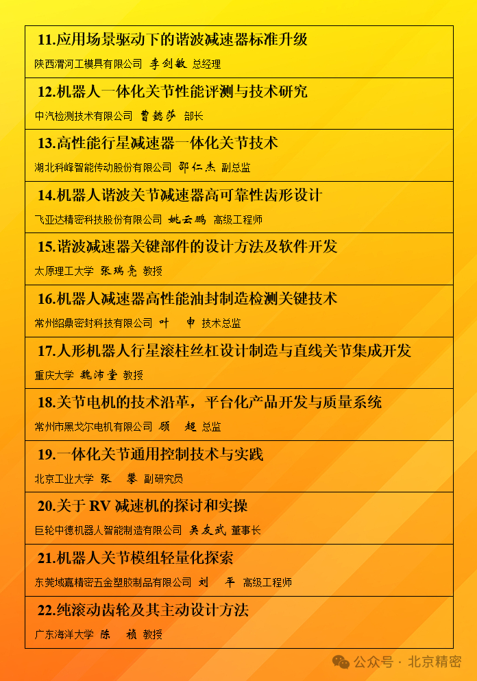 2025年全国机器人精密减速器与关节创新论坛报告清单