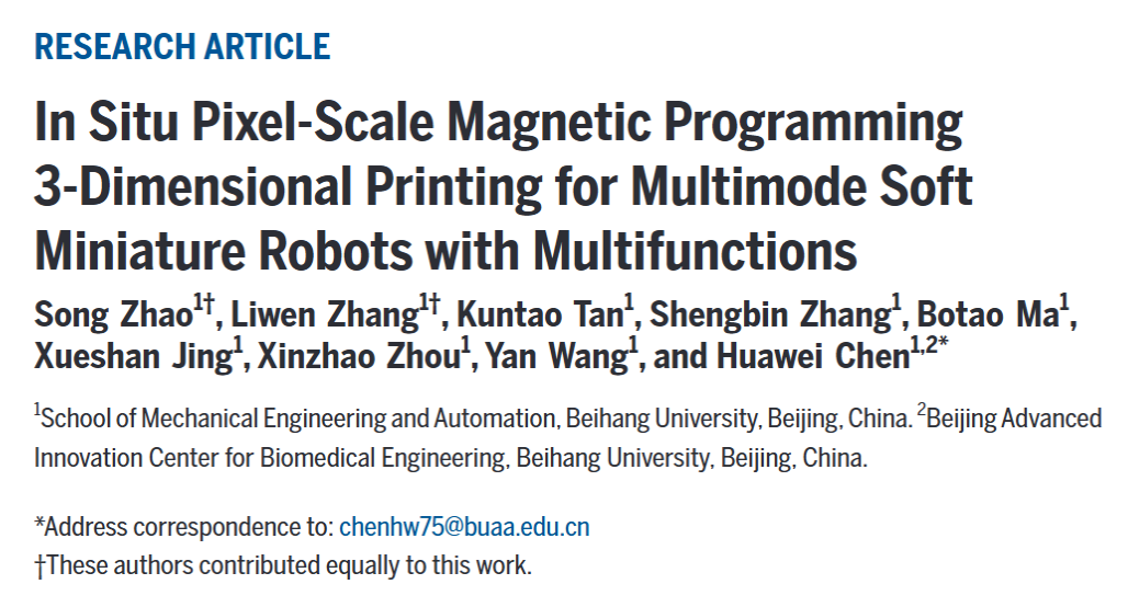 Research|突破传统给药瓶颈!北航陈华伟团队研发像素级磁编程3D打印技术,打造多功能体内微型机器人
