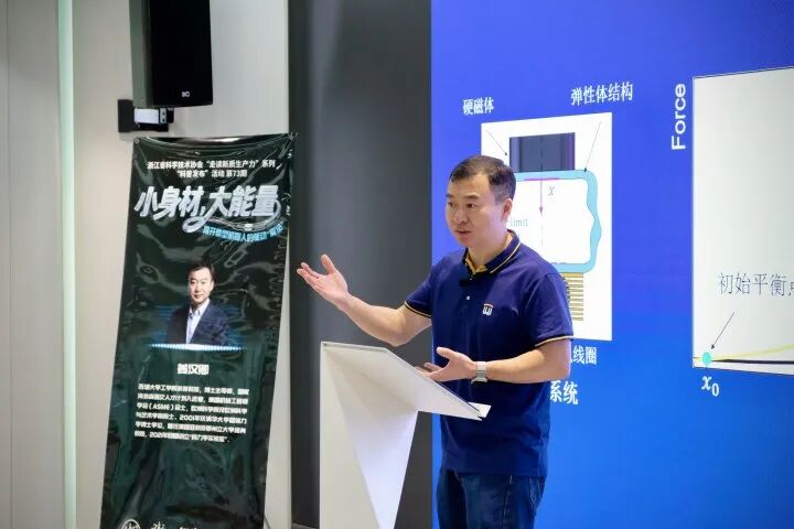 在科幻电影《蚁人》里,主角斯科特·朗穿上战服瞬间缩小,指挥蚂蚁大军穿梭于微观世界,执行那些看似不可能的任务。那一刻,我们不禁幻想:如果真有这样微小却灵活的“机器人”,能自由穿梭于人类无法到达的角落,那该多酷? 如今,这个科幻梦想,正在被一群中国科学家一步步推向现实。 9月21日,在浙江省科协最新一期“科技成果科普发布”活动的现场,出现了几只指甲盖大小的机器人,它们不但会爬行,还会游泳。它们没有外骨骼,没有齿轮,也没有传统电机——“身体”柔软而富有弹性,就像自然界的小型昆虫般灵动。 这就是西湖大学工学院姜汉卿教授团队研发的“自主昆虫级软体机器人”,它的核心秘密,就藏在一种能像动物肌肉一样收缩、伸展的全新驱动技术里。这项成果也发表于国际期刊《自然·通讯》。 如果说《蚁人》让我们看到了“缩小”的可能,那么这款软体机器人则让我们看到了“昆虫尺度自主驱动”的真实突破,可以说是真正意义上的“现实版微型机器人先锋”。 微型机器人 急需强有力的“人工肌肉” 在电影里,蚁人靠“皮姆粒子”缩小并保持力量。但在现实世界,科学家们面临一个巨大挑战:如何让一个只有几厘米甚至几毫米的机器人,拥有足够的力量、形变和续航能力,实现完全自主运动? 现有的机器人大多依赖刚性电机——那些由铜线圈、磁铁和齿轮组成的“小马达”。它们虽然有力,但结构复杂、装配精密,难以实现小型化,而且柔韧性不足。这就好像一只小昆虫被塞进沉重的机械外壳,难以展现灵敏,更别说从30米高空跳下来还能继续爬行。 因此,科学家们一直在寻找一种理想的“人工肌肉”,能像生物肌肉一样,用低能耗驱动,产生大力量和大变形。但过去的技术,要么需要几千伏的高压,要么依赖外部激光或强磁场,实用性大打折扣。 “我们需要的,不是更强的电机,而是一种全新的驱动范式。”西湖大学讲席教授、欧洲科学院院士姜汉卿在活动现场说,“我们决定向自然界学习——学习昆虫肌肉的高效与柔韧。” 姜汉卿团队的答案,是一种全新的电磁弹性体驱动机制(Elasto-Electromagnetic Mechanism, 简称 EEM)。这可不是简单的“电磁铁通电吸合”。EEM的核心,是巧妙平衡“强磁吸引力”与“弹性恢复力”,实现类似肌肉的收缩运动。“关键在于,我们让‘硬磁-软磁’的相互作用成为驱动主力,而不是传统的‘磁铁-线圈’洛伦兹力。”姜汉卿解释道,“这使得输出力提升了数倍,同时驱动行程也大大增加。” 更厉害的是,EEM的“肌肉”不是死板的,而是可以“编程”的。“这就像给机器人装上了不同的‘运动程序’。”姜汉卿介绍,“我们可以根据任务需求,设计出蠕动、游泳或跳跃等不同运动模式。” 从实验室到现实: 这些“小虫子”将来能干啥? “自主昆虫级软体机器人”,听起来很酷,但大家最关心的是:它到底能做什么? 在随后的科学沙龙环节,姜汉卿教授与青年科学家许昌瑀博士展开了一场脑洞大开的对话,把这些“小身材”机器人的“大未来”娓娓道来。 姜汉卿告诉大家,这些微型机器人不仅“会动”,还能“感知”。研究团队在它们身上集成了微型传感器,“这意味着它们不再是简单的执行器,而是具备环境感知能力的智能系统。”姜汉卿展望了未来这种微型机器人的发展方向,“我们希望打造2到3厘米尺度的微型机器人集群系统,让它们拥有群体智能——各自独立探索,又能实时通信协作。” 这种“蜂群式”作业模式,特别适合在人类难以进入的未知环境中执行任务。比如在地震或建筑坍塌现场,大型设备无法深入,搜救犬也受限于空间。这时,一群微型机器人集群出动,钻入瓦砾缝隙,利用传感器探测温度变化、微弱呼吸声和有害气体浓度,并将数据实时回传,为救援争取黄金时间。 许昌瑀也展望了跟这次发布的机器人不一样的微型机器人。想象一下,未来某天突发脑血栓的病人,医生不再需要开颅手术,而是将一枚米粒大小的微型机器人注入血管。它沿着血液流动,精准抵达病灶部位,释放溶栓药物,甚至完成微创修复。 在发布活动开始之前,姜汉卿还带着大家参观了实验室研发的其他机器人,有能协助老人起居的智能养老机器人,还有可以在高空危险环境中作业的仿生机械臂,“我们做的是‘3D机器人’,这个‘3D’不是指三维,而是脏活(Dirty)、险活(Dangerous)、无聊活(Dull)。我们希望未来的机器人,能替人类完成那些做不了、不敢做,或者不愿意做的事。”他描绘了一幅未来图景:工人不再需要冒着高温、高空或有毒环境的风险作业,而是坐在办公室里,远程操控机器人完成任务。“未来的蓝领,或许会变成‘数字白领’——用智慧指挥机器。” 而支撑这些创新的,是一个典型的“跨力学实验室”。姜汉卿教授的团队成员来自材料学、电子工程、生物力学、人工智能等多个领域。“今天的科学难题,很少能靠单一学科解决。”姜汉卿说,“我们要做的是‘搭桥人’,把不同领域的知识连接起来,碰撞出新的可能。”他也借此分享了自己的科研心得,“未来的学习,既要专精一门,也要博采众长。很多时候,一些看似无用的知识,在某个瞬间就有用了。” 正如这次发布的这只小小的软体机器人,或许还无法立刻走进我们的生活,但它承载的想象力,已经悄然萌芽。也许就在不远的将来,当你感觉皮肤上有轻微触感,低头一看——那不是