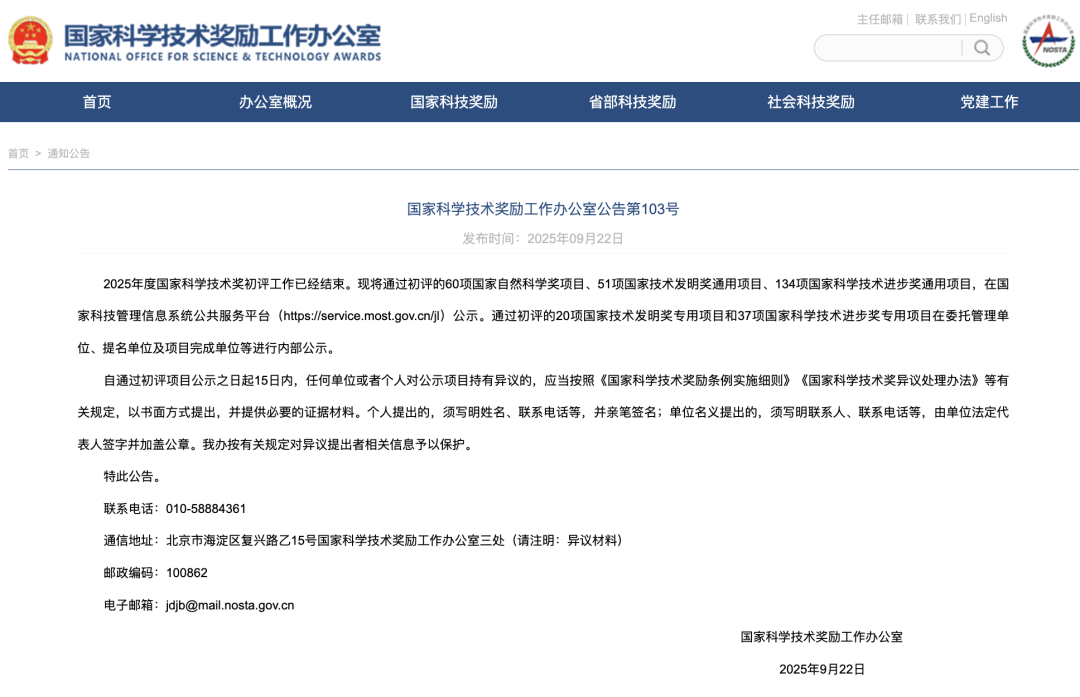 | 302项!2025年度国家科学技术奖初评结果公示(附名单)