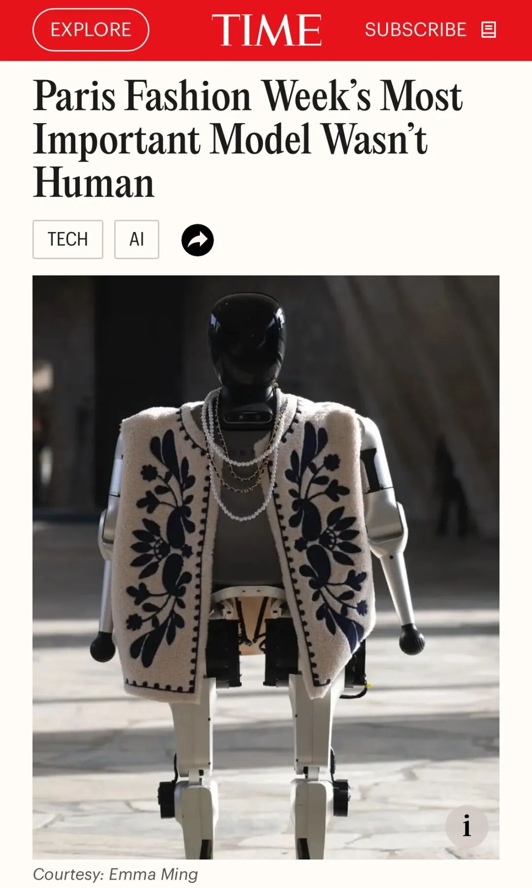 松延动力CEO姜哲源表示:“人形机器人看起来像人类,因此,也许通过与时尚界的合作,可以激发新的火花。”TIME:巴黎时装周最重要的模特不是人类原文链接:https://time.com/7324638/paris-fashion-week-humanoid-robot-model-noetix-n2/文章来源:NOETIX松延动力
