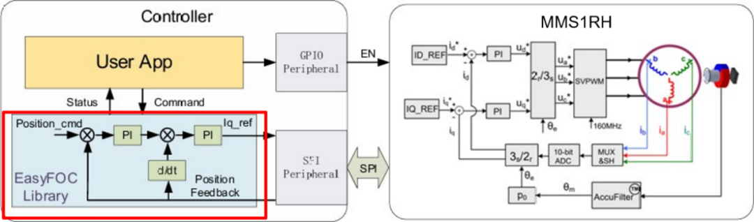 点睛优势:通过合封技术,MPS将传统分立的控制器、驱动器、传感器信号调理电路整合为单一模块,减少布线干扰、提升系统可靠性,同时降低整体BOM成本。 2.微型伺服控制算法:实现高精度、低噪音运动 人形机器人追求拟人化动作流畅性,传统开环控制难以满足需求。MPS在驱动芯片中嵌入了自研微型伺服控制算法栈,专为微型电机优化: 自适应FOC算法: 支持无感FOC(Sensorless FOC)与有感FOC双模式,结合高频注入法实现低速高转矩启动,提升起步平顺性。 振动抑制与噪音优化: