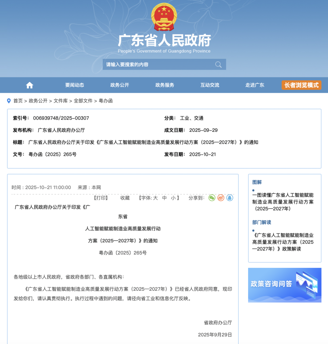 一图读懂|《广东省人工智能赋能制造业高质量发展行动方案(2025—2027年)》发布!