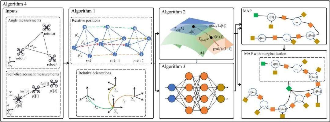 近期,哈工大深圳校区科研团队在机器人领域国际顶刊发表了两项最新成果,受到了业界的广泛关注,一起来看看,为勇攀高峰、追求卓越的哈工大人点赞! 01 近日,哈工大深圳校区智能学部智能科学与工程学院陈浩耀教授团队在机器人路径规划方面取得重要进展,相关研究成果以《Real-Time Multi-Level Terrain-Aware Path Planning for Ground Mobile Robots in Large-Scale Rough Terrains 》为题发表在机器人领域国际顶级期刊《IEEE Transactions on Robotics》(TRO)。该研究通过引入地形分析与构型稳定性估计形成层次化路径规划框架,实现了地面移动机器人在崎岖地形下的安全、稳定、高效的自主导航。 路径规划是地面移动机器人自主作业的核心基础,在崎岖地形自主导航中,机器人需实时感知邻近空间的地形信息进行路径规划。然而传统方法存在地图表征效率和构型稳定性估计精度的双重制约。针对这一难题,研究团队创新性地提出一套实时多层级地形感知路径规划框架,突破传统分层规划框架的局限,通过在全局层与局部层同步引入地形信息,确保安全可靠导航。团队在全局层构建了基于正态分布变换的隐式地图表示方法,用于高效地形分析,巧妙地平衡了地形表示的细节与大规模场景的覆盖。在此基础上,团队实现了地形分析、通行风险评估及可通行性估计,并适配到寻路算法,在提高地形分析可靠性的同时显著加速了全局路径规划。同时,团队在局部层创新性地提出了一种迭代几何评估方法用于局部层的精细运动规划,通过模拟机器人在重力作用下接触地面的过程,高效估计机器人构型稳定性。并将构型稳定性估计巧妙地融入路径搜索算法,从而生成安全、平滑的局部路径。突破了传统方法存在的建模不精准、计算效率低等局限,大幅降低了机器人底盘侧翻、托底等运行风险并显著提升了复杂地形穿越成功率。凭借其模块化设计可灵活适配不同构型的地面机器人和多种路径搜索器,可广泛应用于粗糙的大范围户外地形、多层结构建筑及复杂废墟地形等场景。 团队通过仿真和真实场景的丰富地形实验,并与先进方法进行了对比,验证了提出方法的优越性。 图1 履带摆臂机器人在本文提出的运动规划框架下自主安全的穿越复杂地形。 《IEEE Transactions on Robotics》是机器人领域公认的顶级期刊,专注于发表机器人技术及相关领域的最新研究成果。TRO创刊于1985年,是全球范围内机器人领域的前沿学术期刊。创刊以来,TRO始终以卓越的学术质量与国际影响力著称,持续聚焦机器人学科多元主题,致力于发表原创性强、思考深入且富有洞见的论文。 哈工大深圳校区为论文第一署名单位和通讯单位,深圳校区李宇翔(博士研究生)、陈昆(本科生)、王逸飞(博士研究生)、张伟凡(硕士研究生)、王健丞(博士研究生)等五名同学为论文主要作者,深圳校区陈浩耀教授为论文唯一通讯作者。该研究得到国家自然科学基金、深圳市科创委基金等项目的支持。 值得一提的是,该项研究还吸引了本科生的参与。陈昆同学表示,这是一场难忘的科技探索之旅,无论是推导公式还是算法调试,他都深深地感受到科研是坚持、是热爱。今后将不惧挑战、勇攀高峰,努力取得更多成果。 02 近日,哈工大深圳校区智能学部智能科学与工程学院梅杰教授团队在多机器人协同定位方面取得重要进展,相关研究成果以《3-D Relative Localization for Multi-Robot Systems with Angle and Self-Displacement Measurements》为题发表在机器人领域国际顶级期刊《The International Journal of Robotics Research》(IJRR),是深圳校区首次在该期刊上发表学术论文。该研究通过融合机器人间的角度测量与自位移测量信息,在强噪声环境下实现了高精度的多机器人相对定位。 相对位姿信息是多机器人协同作业的核心基础,例如无人机编队飞行中,无人机需实时感知邻近无人机的空间位置以维持特定队形。然而传统算法受限于测量噪声干扰,在精度与实时性间难以权衡。针对这一难题,研究团队基于机器人之间的角度测量与机器人自身的位移测量,创新性地提出一种线性相对定位算法,该算法极大地降低了定位所需的计算量。同时,针对噪声环境下带来的定位精度瓶颈,团队将时间窗口内协同定位问题转化为最大后验估计(Maximum a Posterior,MAP),并结合线性相对定位算法,解决了求解MAP时的两个重要问题:一是初始值估计问题,团队将线性相对定位算法中线性计算过程重构为流形上加权总体最小二乘问题,并将此估计结果作为求解MAP问题的初始值。二是先验概率密度估计问题,即初始时刻机器人之间相对位姿的估计和置信度问题,团队巧妙地在线性相对定位算法的基础上设计神经网络概率密度估计器以学习初始时刻的相对位姿先验分布,突破了传统方法无法估计高维先验概率密度的问题。最后,团队引入边缘化机制,避免了求解MAP问题时的维度爆炸问题。通过仿真和无人机集群实物实验,验证了所提出算法的有效性。 图 1 算法总体框图。算法以角度和自位移测量为输入,Algorithm 1为线性相对定位算法,Algorithm 2为WTLS,Algorithm 3为NDE,Algorithm 4为整体算法。 《The International Journal of Robotics Research》是机器人领域公认的三大顶级期刊之一(与IEEE Transactions on Robotics、Science Robotics并列),专注于发表机器人技术及相关领域的最新研究成果。IJRR创刊于1982年,是全球范围内机器人领域首本学术期刊。