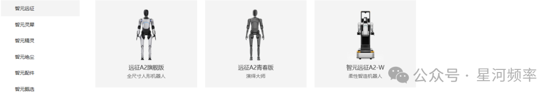 - 远征系列:智元主打产品,强调全身协调与通用智能,承担复杂交互和展示任务;包括双足人形远征 A2、轮式人形远征 A2-W;