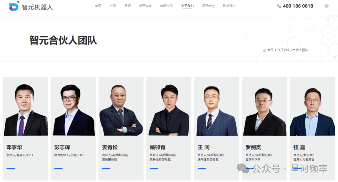 相比常驻台前的彭志辉,智元真正的战略奠基人是邓泰华。他曾是华为副总裁,主导了鲲鹏处理器与昇腾 AI 芯片生态建设,将开发者规模从 0 提升至 200 万。如今智元的开源+激励策略,正是这一生态构建经验的延续。而且,智元的核心高层大多来自华为,他们带来了成熟的生态构建经验与资源整合能力。智元前不久也明确了 7 人合伙人团队,除邓泰华、彭志辉外,还包括: