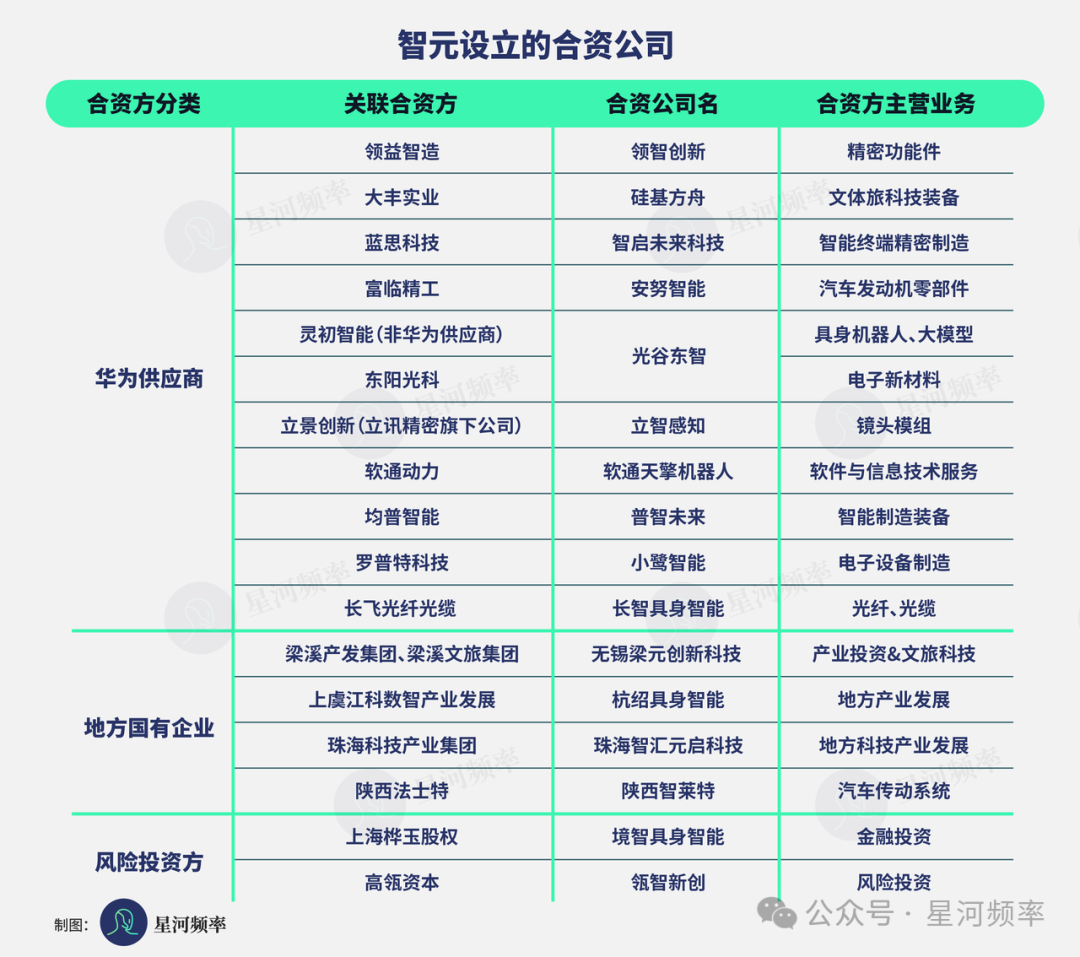 资本先行:用合资与投资织出生态网络智元的资本打法与其他初创公司截然不同——它通过「成立合资公司 + 投资入股」两条路径,把关键资源、产能和场景方纳入自己的生态网络。截至目前,智元已与 18 家企业成立 16 家合资公司,合作方包括: