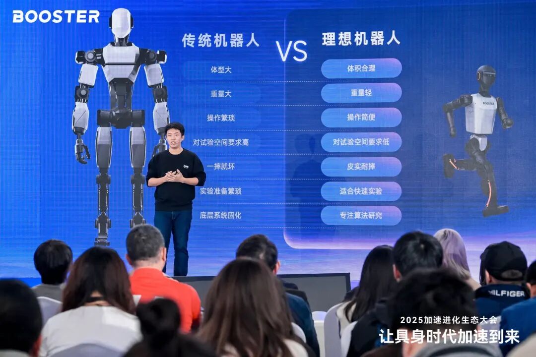 为构建从技术到应用的全链路生态,加速进化首次公开系统展示了以Booster K1为核心的“教、学、练、赛、用”全链路闭环,发布了完整的机器人教育赛事解决方案,并启动了面向全国高校的“百城万校”战略计划,旨在深度推动具身智能人才培养与市场开拓。大会现场反响热烈,经销商现场签约订单超过千台,充分印证了市场对加速进化产品与生态模式的高度认可。 ▎Booster K1,具身开发入门级平台 本次大会上,加速进化CEO程昊正式发布了全新产品Booster K1。为满足不同开发应用场景,Booster K1设立了三个配置版本: 极客版,22自由度,提供48 Tops的AI算力,续航30分钟,3个月质保,满足对基础运动和控制的所有探索。 教育版,22自由度,提供117 Tops的AI算力,续航80分钟,1年质保,适配教学与科研场景。 专业版,22自由度,提供200Tops的AI算力,续航80分钟,1年质保,可部署最复杂的模型,挑战最前沿的算法。 与其他公司 “先Demo+后预售” 的模式不同,在本次生态大会正式发布前,Booster K1共创版已历经多维度严苛实地校验,软硬件经过了多轮升级优化,技术成熟度与场景适配性得到了充分验证。在2025年7月份的巴西RoboCup机器人世界杯上,德国HTWK队正是凭借Booster K1赢得了KidSize组冠军。 硬件方面,Booster K1拥有19.5kg的轻量化机身和95cm的高度,搭载了22个自由度关节。它不仅成功通过了连续30小时、500N级别的撞击测试,更完成了超过100小时的真机连续运行验证。定价方面,2.99万元的限时售价,有力打破了‘具身智能技术门槛高、应用成本高’的长期瓶颈,为具身智能开发的普及扫清了关键障碍。 除了硬件与价格优势,Booster K1还围绕开发者需求,构建了完备的配套支撑体系。针对开发者对便捷开发的核心诉求,Booster K1提供了丰富的API接口、开源应用框架以及交互友好的操作端APP,还发布了Booster Agent应用生态平台;除官方自研Agent应用外,开发者还可自主开发并分享各类定制化Agent应用。该平台支持无代码开发模式,用户通过拖拽操作、示教学习即可让机器人掌握新动作,专属指令可一键调用,平台还内置多组示例动作,真正实现了开箱即可投入应用。 为了降低应用开发门槛,加速进化还发布了启航计划:不仅免费开放一站式开发工具、开发视频课程,还升级开源的Booster GYM、Booster RoboCup Demo,还启动了Agent开发团队种子投资计划,鼓励开发者探索更多具身Agent的开发。 Booster K1实现了‘全场景适配’与‘高综合性能’的统一。它兼具便携随行、开箱即用的易用性,以及超强算力(搭载高性能计算核心)和精准控制带来的高性能。结合坚固耐造的结构设计,强大的运控能力,低门槛的开发平台,Booster K1能够从科研实验到教学实践,从场景测试到展示演出,高效适配多元化的使用需求,为具身智能技术的规模化落地与普惠化发展注入关键动力。 ▎打造具身商业生态基石,做AI时代的苹果一个皮实、耐造的机器人本体+充满想象力的开发应用平台,仅是加速进化构建其生态的产品基础。以标准化硬件为核心载体,以完备的开发工具、强大的售后服务、生态资源为支撑,持续降低行业准入门槛,提供解决方案协同各方拓展市场,实现从“销售产品”到“繁荣生态”的价值闭环。这一生态构建逻辑与苹果发展路径高度同频。 ▎提供教育+赛事解决方案,打造全链路闭环生态依托‘教、学、练、赛、用’全链路闭环生态,加速进化打造了兼具场景落地性与产业扩展性的机器人教育及赛事解决方案,实现了‘课堂教学-科研实验-赛事竞技’三位一体的深度融合。 在教学解决方案方面,加速进化构建了覆盖K12教育、职业院校、高等院校及科研机构的完整赋能体系,提供从实验室建设到课程开发的全流程支持,从而精准适配从青少年兴趣启蒙科创教育到专业人才、科研人员进阶训练等全年龄段开发者的多元化需求。在大会现场,加速进化还发布了“百城万校”计划——在未来3年,加速进化将会和1000+高校、2000+职业学校,7000+中小学进行课程合作,推动机器人教育在中国和全球的全面普及。 在赛事解决方案方面,凭借在机器人足球赛事领域积累的成熟技术与运营经验,加速进化搭建了全链条赛事生态支撑体系,涵盖赛事执行运营、软硬件技术支撑、赛事品牌共建与商业化变现等核心模块。在技术支撑层面,加速进化提供了专属开发工具与仿真平台,使开发者无需真机即可进行算法训练、对抗测试与策略验证。同时,公司还开源了3v3 K1专属算法及可直接用于二次开发的战术决策算法框架,进一步降低了赛事参与门槛。 为进一步完善生态布局、强化多地区、多场景市场拓展能力,加速进化在本次大会上与多家行业伙伴达成重要合作,包括北京机器人融资租赁股份有限公司、湖北光谷东智具身智能技术有限公司、来自迪拜的教育科技公司Leader EduTech、古月居(精锋微控(黄石)科技有限公司上海分公司)、鲸海拾贝科技(厦门)有限公司、成都阿加犀智能科技有限公司等,并授予金牌渠道代理商称号。这些合作将共同为机器人开发、教育普及与赛事推广提供更坚实的落地支撑。 ▎真交付+真出货,实战派基因支撑高速成长Booster K1能精准满足开发者需求,并深耕具身智能生态建设,这并非孤立的产品突破,其背后是加速进化的深厚技术积淀与系统性战略布局。 加速进化自2023年8月成立以来,依托‘20年双足人形机器人硬件产研经验’与‘互