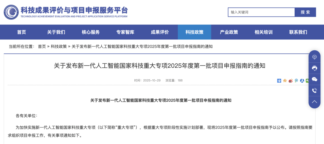 | 新一代人工智能国家科技重大专项2025年度第一批项目申报指南