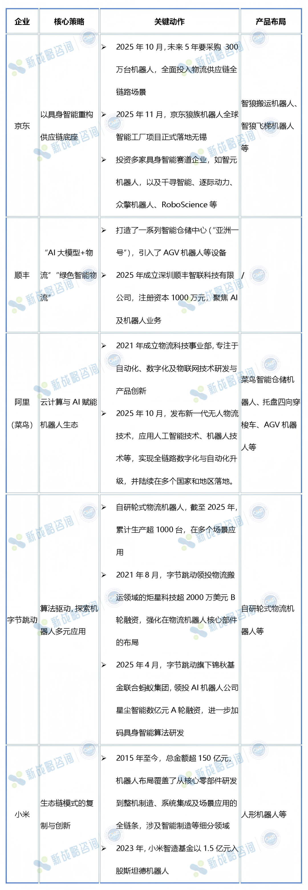 当前,人工智能与机器人产业正经历一场从“单点智能”向“全局融合”的深刻变革。其中,物流领域凭借其清晰的商业闭环与庞大的应用场景,成为前沿技术落地的前沿阵地。 这一历史性进程,离不开头部领军企业的深度赋能。纵观市场,从京东雄心勃勃的百亿采购计划,到美团、字节跳动等互联网巨头的密集产业投资,大厂资本正以前所未有的力度与战略耐心,全力催熟技术、培育产业生态、争夺定义未来行业格局的关键“入场券”。 大厂如何下注物流机器人? 2025年,产业界正在形成前所未有的紧迫感,AI大模型不再停留在“看得见摸不着”的数字空间,而开始强力凭借各种物理实体进入现实世界。 物流正是其中一个迎来实质性变革的关键领域。作为由无数节点构成的庞大网络,该行业规模庞大、地位显著。据中国物流与采购联合会及国家发展改革委发布的数据,2024年物流业总收入为13.8万亿元,同比增长4.9%,GDP占比高达14.1%。 物流机器人长期具备明确的商业回报,例如路径规划、跨楼层搬运、货到人系统及分拨中心的智能调度等,均能实时转化为可量化的效率提升。而随着AI大模型的应用深化,物流机器人正从“执行动作”向“理解环境、协同作业与动态决策”跃升,推动整个物流体系走向具身化、智能化与有机化。 在这一趋势下,大厂对物流机器人的关注已达沸点,今年以来布局动作尤为密集。为清晰呈现这一轮产业动向,CMR产业联盟与新战略移动机器人产业研究所基于公开信息,系统梳理了大厂的最新布局。 在这场资本与战略布局的盛宴中,各大互联网大厂依据自身基因,走出了风格迥异的路径。 从“机器换人”到“全局智能” 巨头的战略布局与资本流向,清晰地勾勒出AI+物流机器人领域正在发生的三大深刻演进。 物流机器人的内核正被AI大模型重塑,从执行预设程序的“功能机”,进化成为能感知、理解并自主决策的“智能体”。无论是菜鸟智能仓储机器人借助大模型快速匹配最优货位,还是字节跳动自研的轮式物流机器人展现出的自主学习与动态路径规划能力,其背后都是前沿技术的成熟。 行业的竞争维度也随之提升,从单一机器人产品的性能,上升至整个物流链路的整体效率与协同水平。未来的智能物流系统,必将是由多种形态物流机器人在一个统一AI“大脑”指挥下,实现高效协同的有机整体。 与此同时,行业的焦点正从“资本热”转向“产业实”。资本的目光变得更为务实,从青睐“技术概念”转向拷问“产业化能力”。菜鸟推出的新一代无人物流技术、京东狼族机器人超级工厂的落地,都标志着行业进入了“规模化量产”与“商业化闭环”的双重攻坚阶段。 能否跨越成本门槛、实现稳定可靠的规模化部署并形成健康的商业循环,已成为决定企业能否走到最后的关键赛点。 挑战与前景:共筑产业新生态 尽管资本火热、前景可期,严峻的挑战依然横亘在产业面前。 资本呈现出明显的“头部虹吸”效应,少数明星企业获得了绝大部分关注与资源,而大量具备潜力的中腰部企业,仍需更多具备产业视野的资本予以关注与赋能,以激活整个产业的创新活力。 结语 AI+物流机器人的这场长途竞赛,早已不再是单点技术或产品的比拼,而是升级为整个生态体系与产业战略耐心的全面较量。大厂们正在用真金白银的资本投票,赌的是一个确定的未来。 这场由技术突破与资本力量共同驱动的宏大产业变革,才刚刚拉开序幕。而所有关于未来的答案与路径,都将在产业各界的深度交流、思想碰撞与务实合作中,逐渐变得清晰、坚定。 |