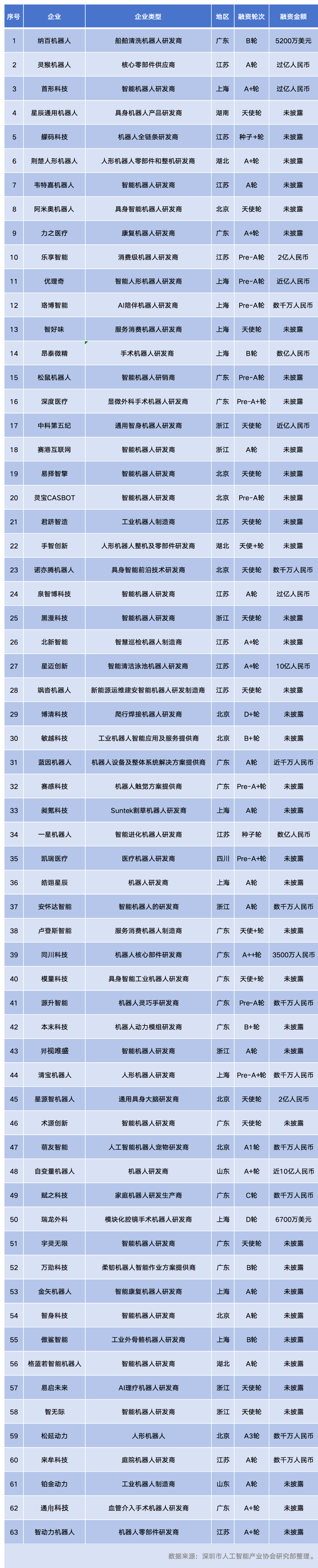 2025年9月,我国机器人产业融资市场持续保持高热度,融资项目数刷新年内峰值,呈现出融资规模放量增长、资本向核心赛道集聚、区域分布相对集中的鲜明特点,具体情况如下: 9月国内机器人领域融资热情再度攀升,63起融资交易全面覆盖产业链各环节,资本加速向头部企业及核心赛道汇聚的态势愈发明显。融资额度呈现出显著的分化特征,头部企业的资金吸附能力尤为突出:星迈创新、自变量机器人两家企业分别获得近10亿元人民币的大额融资,纳百机器人、瑞龙外科的融资额也分别达到5200万美元与6700万美元,此外一星机器人、昂泰微精等一众企业亦成功斩获数亿元级别的资金支持;与此同时,数千万至1亿元区间的融资案例持续涌现,另有超半数融资企业未对外披露具体金额,这一现象既反映出行业内企业成熟度的差异,也凸显了资本精准布局的策略特点。 从融资轮次来看,资金覆盖了企业发展的完整生命周期,成长期企业与初创型企业融资需求并行释放。其中,A轮及A+、A++等衍生轮次的融资最为密集,成为支撑企业业务扩张的核心资金来源;Pre-A系列轮次则为处于发展过渡期的企业提供了关键助力,帮助其顺利迈向成长期;而D轮、C轮及Pre-IPO阶段的融资案例,则标志着部分头部企业已进入商业化落地的冲刺阶段,当前机器人领域已形成层次分明的完整融资生态体系。 融资区域的聚集效应十分显著,产业集群的规模优势进一步凸显。广东省以14家获投企业的成绩领跑全国,凭借扎实的制造业场景基础,稳居机器人融资高地;江苏省紧随其后,有13家企业获得资本青睐,其融资企业主要聚焦于消费级与工业机器人赛道;上海、北京分别有11家、9家企业跻身融资榜单,两地企业多集中在医疗机器人、人形机器人等高技术附加值领域。目前,长三角、京津冀与珠三角三大区域已构筑起全国机器人产业的核心发展极。 机器人赛道的融资布局呈现出“多元发展、聚焦核心”的特征,人形机器人与具身智能两大方向成为资本追逐的核心焦点,灵猴机器人、同川科技等专注于核心零部件研发的企业也获得了更高关注度;医疗机器人赛道表现格外亮眼,专注于康复机器人、手术机器人的相关企业融资活动频繁;消费级与工业级机器人则保持同步发展态势,应用场景持续拓展,已覆盖船舶清洗、新能源设备运维、庭院服务等多个细分领域。在政策扶持与市场应用需求的双重驱动下,我国机器人行业正加速向纵深领域迈进。 图表:2025 年 9月我国机器人领域63个融资项目 文章来源:元创元宇宙 |
