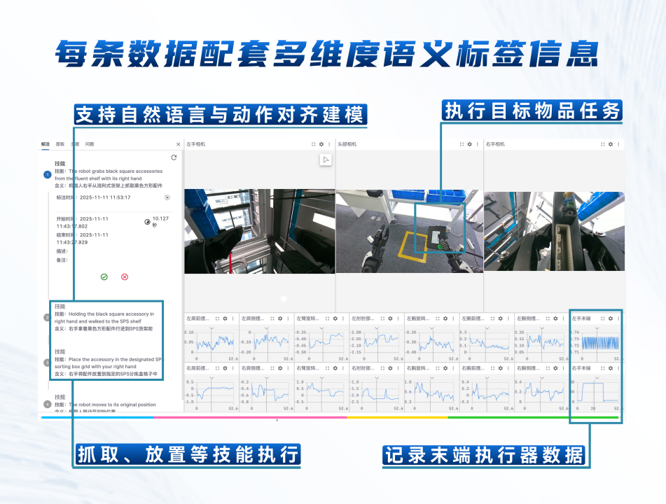 在具身智能的浪潮之巅,人形机器人的进化正遭遇着一道无形的枷锁——高质量、大规模真机数据的极度匮乏。仿真环境下的“完美数据”难以跨越现实世界的“复杂性鸿沟”,成为制约行业从实验室走向规模化应用的核心瓶颈。 近日,由乐聚智能(深圳)股份有限公司、国家地方共建人形机器人创新中心、北京数聚通启运营管理有限公司和苏州吴江智训未来运营管理有限公司联合主导构建的国内规模最大的首个面向真实作业场景的全尺寸人形机器人数据集——“LET数据集”重磅发布,首批开源超过60,000分钟的真机数据。这不仅是量的堆叠,更是一次在数据质量、采集标准与应用广度上的质的飞跃,为人形机器人产业的“Scaling Law”提供了至关重要的燃料。 ▎国地标准共建引领:从“数据孤岛”到“产业公信力” 数据的价值,首先源于其可信度与规范性。LET数据集从诞生之初,就肩负着构建行业基准的使命。 · 权威背书,树立质量标杆:LET数据集以国家地方共建人形机器人创新中心规范为基准,从采集流程、数据格式到标注体系,均遵循一套严格的标准框架。这确保了数据的高质量、专业合规性与可用性,使其从“数据集”升级为值得信赖的“标准化数据资产”。 · 开箱即用,破解行业痛点:长期以来,研究者与开发者耗费大量精力在数据清洗、对齐与格式化上。LET数据集通过统一的标准化处理,有效破解了多源异构、格式不一、质量参差不齐等行业沉疴,实现了“开箱即用”,极大提高了科研效率。 · 生态共建,面向全球开放:此次LET数据集携手原子开源基金会,创造了国内开源规模最大的全尺寸人形机器人数据集,通过OpenLoong社区及多个渠道向全球开放,开源上线60,000+分钟数据,共同构建统一、开放、健康的产业生态。 ▎60,000+分钟真机实采:锻造穿越“现实鸿沟”的鲁棒性 “60,000+分钟”这个数字背后,是海量知识与物理规律的浓缩。而其最核心的价值,在于“真机实采”这四个字。 · 统一的硬件平台:所有数据均基于乐聚“夸父”全尺寸人形机器人(40+自由度,身高1.66米)进行采集,从根本上避免了因机器人形态、性能差异导致的数据偏差,为算法训练提供了高一致性的宝贵基础。 · 拥抱真实的不完美:与仿真数据不同,真机实采完整包含了真实世界的物理约束、环境扰动与传感器噪声。正是在这些“不完美”中训练出的模型,才具备了穿越“现实鸿沟”的强大鲁棒性与迁移能力,在端到端部署中表现出远超仿真模型的性能。 · 验证Scaling Law的优质燃料:大规模、高质量的数据是驱动模型能力跃迁的关键。这60,000+分钟的数据,将为验证和推动人形智能的Scaling Law提供前所未有的优质基础,推动模型从简单的“动作模仿”向学习背后“通用规律与决策策略”演进。 ▎多模态数据融合:构建“身临其境”的认知体系 单一的视觉或关节数据无法支撑机器人对复杂任务的深度理解。LET数据集的先进性,体现在其系统性的多模态数据融合与对齐能力上。 · 全方位环境感知:数据集同步采集了机器人头部立体相机与双腕RGB-D相机的视觉数据流,融合了RGB图像、深度图,为模型提供了丰富的环境三维信息。 · 本体状态同步记录:在感知环境的同时,关节电机状态、末端执行器状态等关键本体信息被精确同步记录(误差与延迟严格控制在10ms以内)。这使得数据不仅能回答“看到了什么”,更能回答“身体正在做什么”。 · 系统化对齐标注:更重要的是,LET数据集构建了一套系统的多模态对齐标注体系。通过任务细化与多维度语义标签,将视觉、深度、本体状态在时空维度上进行精准关联,显著提升了数据的质量标准,让模型能够以更接近人类的方式,建立感知与动作的统一认知框架。 ▎多场景覆盖:铸就面向未来的泛化能力 真正的智能,体现在应对未知与变化的泛化能力上。LET数据集以真实作业场景为核心,构建了一个前所未有的多样化任务生态。 · 三大领域,六大场景:数据集全面覆盖工业、商业零售及日常生活三大核心领域,具体囊括汽车工厂、快消场景、3C工厂、酒店服务、生活服务及物流场景这六大高价值应用场景。 · 原子技能到复杂任务:在这六大场景中,数据集系统化地拆解并实现了31项具体任务,背后是117种原子技能的灵活组合。从简单的抓取放置,到复杂的工具使用、双臂协作,为模型提供了从基础到高阶的渐进式学习素材。 · 泛化能力的基石:如此广谱的场景覆盖,确保了基于LET数据集训练的模型不会成为“流水线专用工具”,而是能够举一反三,将其在某一场景中学到的技能,迁移适配到其他未知但相似的场景中,铸就了应对复杂现实世界的强大泛化能力。 ▎模型使用开发者友好 LET数据集提供了一套数据转换、模型训练、仿真测试与真机部署的全流程数据工具链,这将进一步推动具身智能行业的研发与落地。 <滑动查看更多> <滑动查看更多> 左右滑动查看更多 ▎结语:开启协同创新的新篇章 LET数据集的开源,标志着一个新时代的开启。它通过“国地标准共建”确立了数据的公信力,以 “60,000+分钟真机实采”保证了数据的真实性与规模,凭借“多模态”融合构建了深度认知的基础,并借助“多场景”覆盖铸就了面向未来的泛化能力。 这不仅是乐聚与创新中心等机构的技术贡献,更是向国内产业界发出的一份开放、协同的倡议。正如Linux之于操作系统,I