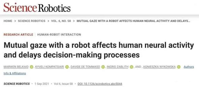 科学家最新研究发现: 当你和人形机器人相互凝视,你的决策速度会变慢! 和机器人玩一局策略游戏