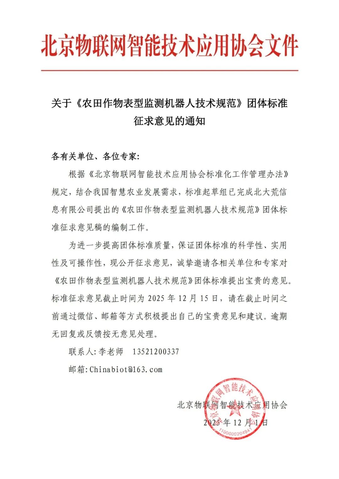 通知 | 关于《农田作物表型监测机器人技术规范》团体标准征求意见的通知