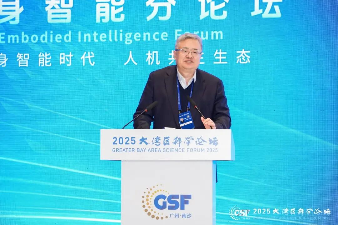 2025年12月8日,由香港科技大学(广州)主办,香港科技大学(广州)系统枢纽、信息枢纽承办的2025大湾区科学论坛具身智能分论坛在广州南沙国际会展中心隆重举行。 2025大湾区科学论坛具身智能分论坛现场 分论坛以“具身智能时代,人机共生生态”为主题,汇聚了中国工程院院士陈新、于海斌、黄庆学,英国皇家工程院院士戴建生,哈尔滨工业大学机器人研究所所长赵杰,以及来自哈尔滨工业大学、广东工业大学、深圳大学、南方科技大学、香港科技大学(广州)等高校的专家学者,北京人形机器人创新中心、国地共建人形机器人创新中心等科研机构负责人,广州市工业和信息化局、广州市科学技术局代表,以及科技企业代表近250人。与会嘉宾围绕具身智能前沿技术、跨学科融合、产业生态构建等关键议题展开深入交流,为大湾区乃至全国具身智能产业的创新突破与长远发展汇聚智慧、开拓新局。 分论坛开幕式由香港科技大学(广州)副校长(研究)李世玮教授主持,他表示,希望通过本次分论坛,能够促进大湾区内外的学术合作与技术交流,为具身智能的创新发展注入新的活力。 港科大(广州)副校长(研究)李世玮教授 香港科技大学(广州)校长倪明选教授在致辞中指出,具身智能正从数字世界迈向物理世界,引发深刻的生产力变革。港科大(广州)以“融合”为特色,将具身智能列为重点战略方向,并成立具身智能研究所,旨在打破学科壁垒,整合人工智能、机器人、微电子、智能制造等领域优势,构建从基础理论到场景验证的全链条创新闭环,推动前沿学术与真实产业需求深度融合。粤港澳大湾区拥有丰富的应用场景、完整的制造业生态和开放的合作环境。倪明选校长表示,他期待能与来自各界的伙伴一起,将前沿算法、智能模型和模块化系统更快、更实的转化为先进生产力。 港科大(广州)校长倪明选教授 揭牌签约 开启产学研合作新篇章 作为港科大(广州)重点布局的战略方向,具身智能的科研布局与平台建设迈出关键一步:港科大(广州)正式成立具身智能研究所,并举行了揭牌仪式。仪式由信息枢纽院长陈雷教授主持。 信息枢纽院长陈雷教授 中国工程院院士陈新(右三)、广州市工信局副局长黄星耀(右二)、广州市科技局副局长吴汉荣(右一);港科大(广州)校长倪明选教授(左三)、副校长(研究)李世玮教授(左二)、机器人与自主系统学域署理主任、具身智能研究所署理所长黄强(左一) 港科大(广州)机器人与自主系统学域署理主任、具身智能研究所署理所长黄强详细介绍了香港科技大学(广州)具身智能研究所发展规划。研究所将建设成为跨学科科教融合平台、新技术突破平台和示范应用集成系统,致力于培养高端人才、承担国家重大课题、推动技术落地应用。 港科大(广州)机器人与自主系统学域署理主任、具身智能研究所署理所长黄强 广州市人形机器人系统之家创新中心(筹)正式揭牌。 中国工程院院士陈新(右三)、广州市工信局副局长黄星耀(右二)、广州市科技局副局长吴汉荣(右一);港科大(广州)校长倪明选教授(左三)、副校长(研究)李世玮教授(左二)、机器人与自主系统学域署理主任、具身智能研究所署理所长黄强(左一) 港科大(广州)与北京人形机器人创新中心签署战略合作协议,在具身智能领域产学研协同创新迈出坚实步伐。 中国工程院院士陈新(后左)、港科大(广州)校长倪明选教授(后右)、港科大(广州)副校长(研究)李世玮(前左)、北京人形机器人创新中心总经理熊友军(前右) 聚智湾区 共绘智能新生态 上午的主旨报告环节,由中国工程院院士陈新主持。 中国工程院院士陈新 中国工程院院士于海斌系统分析了装备智能具身化发展的需求、实现的可行性和必要性,阐述了大模型驱动的具身智能体系结构和关键技术,初步探讨了装备智能具身化实现的途径,提出了具身智能赋能高端装备的范式,展望了其未来的发展前景和重点方向。 中国工程院院士于海斌 围绕冶金工业智能化、绿色化、高端化发展趋势,中国工程院院士黄庆学开展“材料 - 工业 - 装备”系列化创新研究,以低的资源能源消耗,低的环境生态负荷,高的效率和劳动生产率向社会提供足够数量且质量优良的金属产品,满足国家安全、社会发展和人民生活的需求。 中国工程院院士黄庆学 哈尔滨工业大学机器人研究所所长赵杰针对当前人形机器人迅猛发展的热潮,首先介绍当前我国人形机器人面临的形势,并对当前面临的一些问题进行探讨,最后从“技术母体”重要作用的角度阐述如何正确看待人形机器人和应对策略。 哈尔滨工业大学机器人研究所所长赵杰 下午的主旨报告由港科大(广州)信息枢纽院长陈雷教授主持。 英国皇家工程院院士戴建生表示,人工智能高度发展需要物理本体,需要与物理世界紧密结合,即具身智能。而匹配人工智能高度发展的具身智能需要机器人变身、变体、变胞,需要机器人结构的颠覆性变化,以实现结构智能与物理智能,完成高质量的具身智能。 英国皇家工程院院士戴建生 北京人形机器人创新中心总经理熊友军与国地共建人形机器人创新中心首席科学家江磊分别从产业实践角度,分享了人形机器人创新发展、技术攻关与场景应用的现状与思考,指出需通过“场景-技能”解耦与世界模型构建,加速迈向通用智能体。 北京人形机器人创新中心总经理熊友军 国地共建