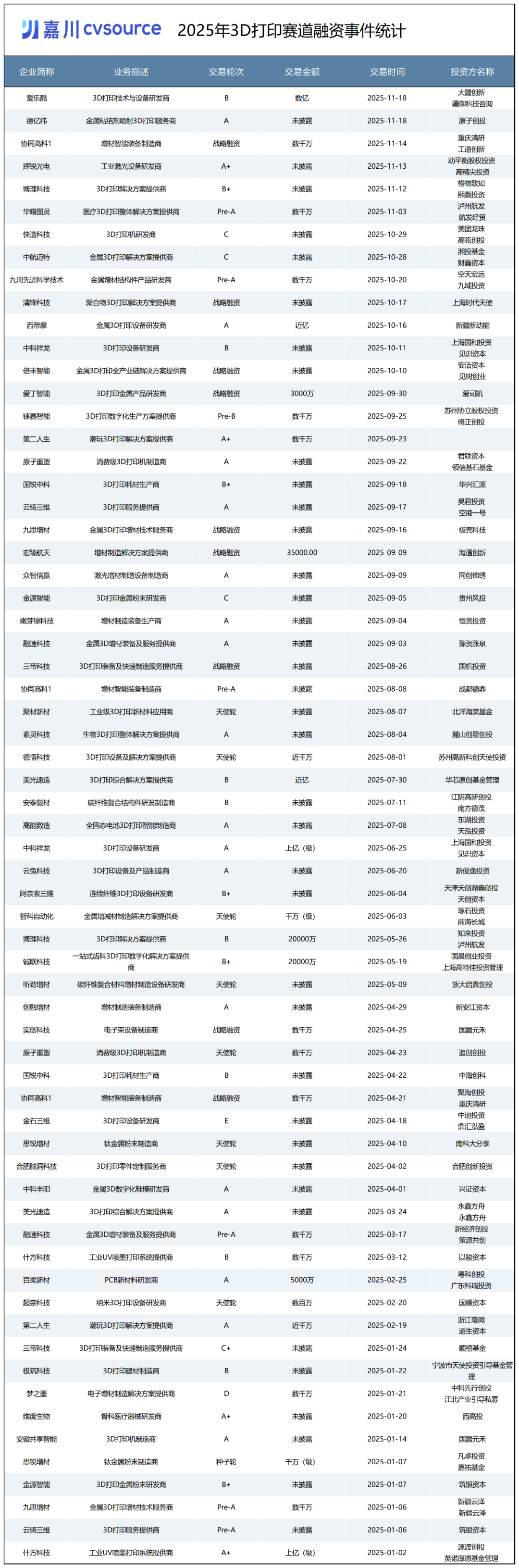 资本争相入局,3D打印赛道2025年融资超70笔,消费与工业双线爆发