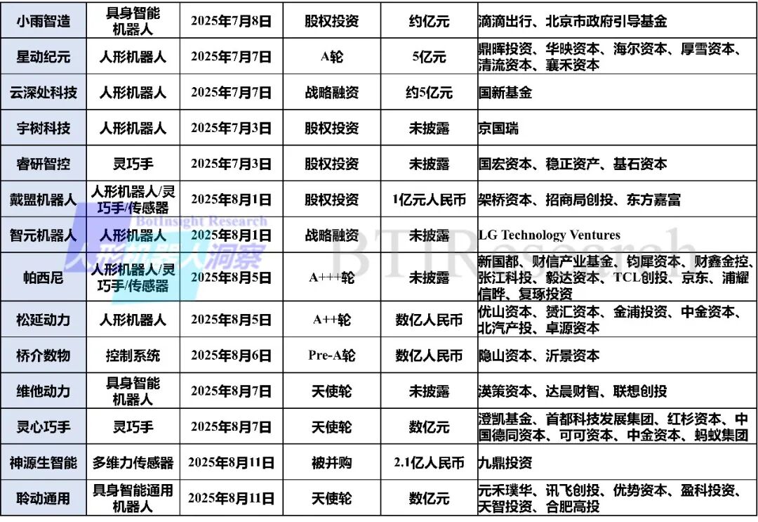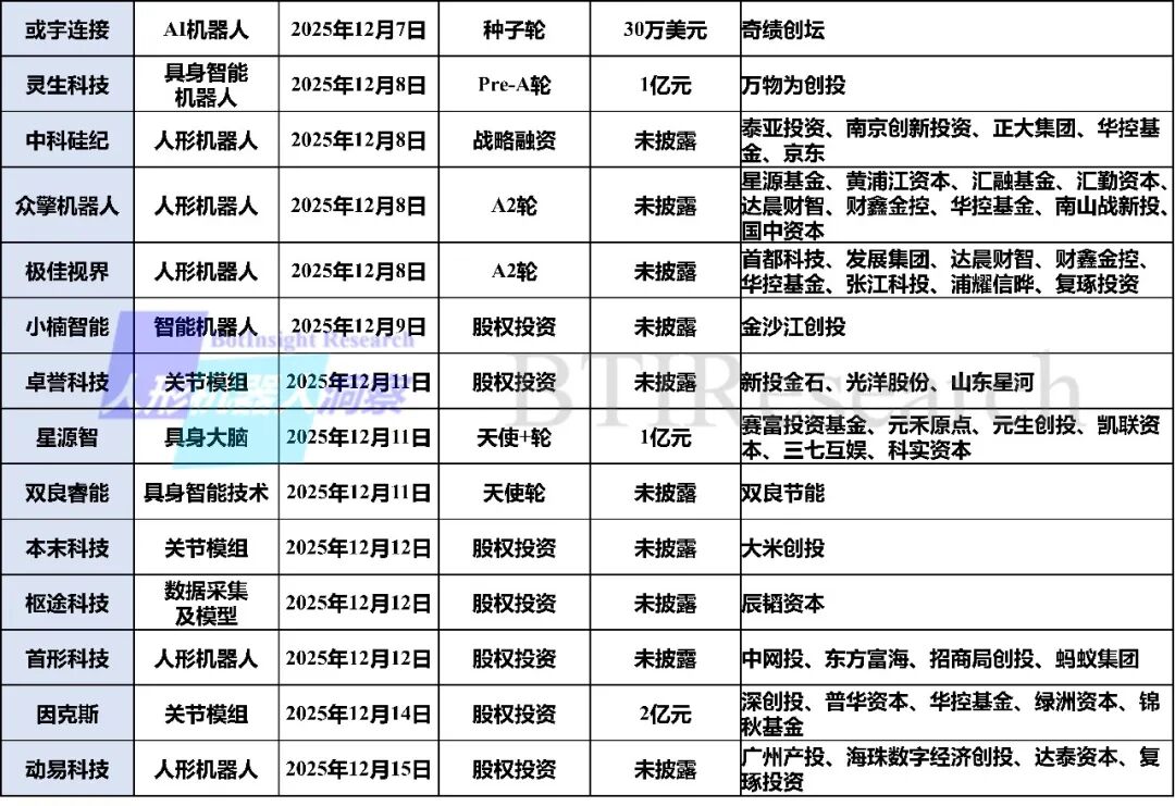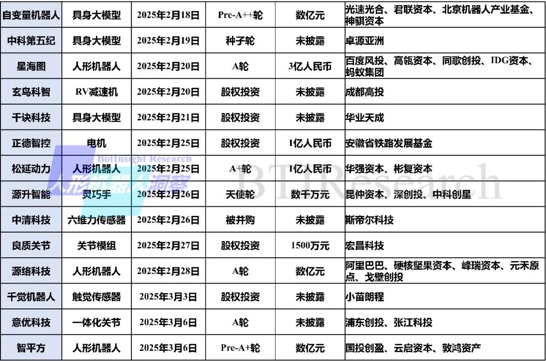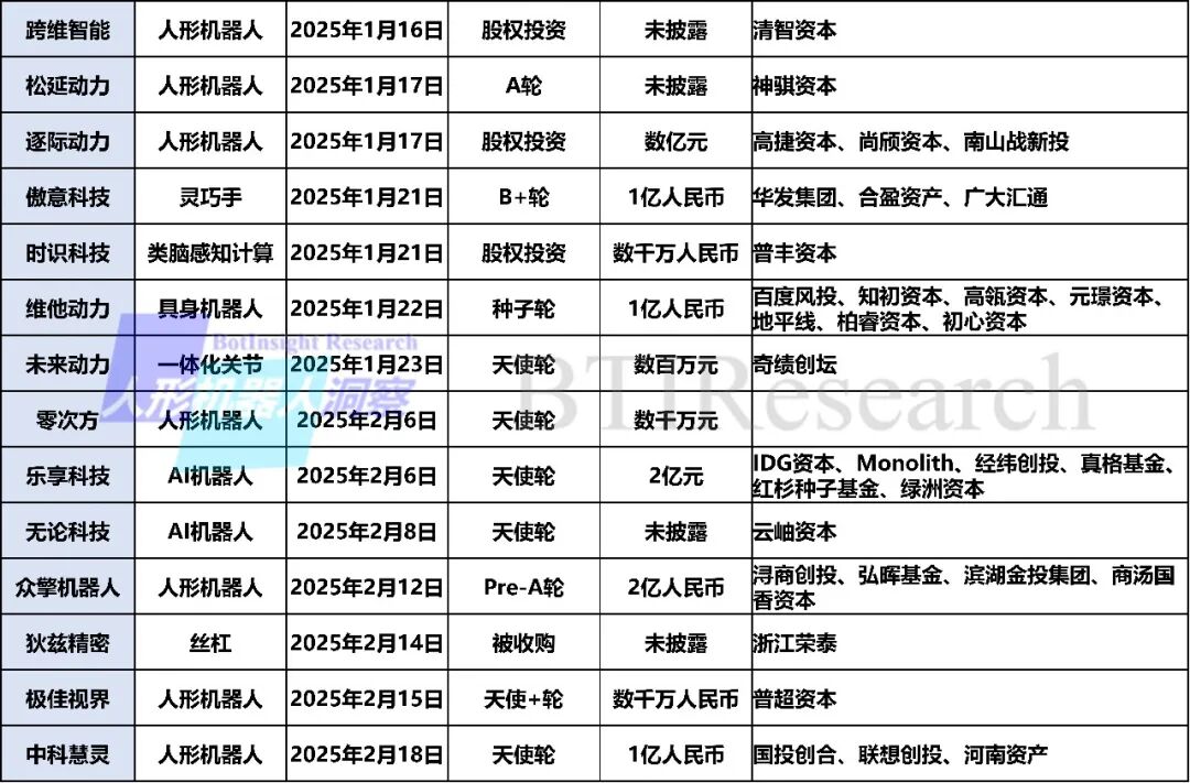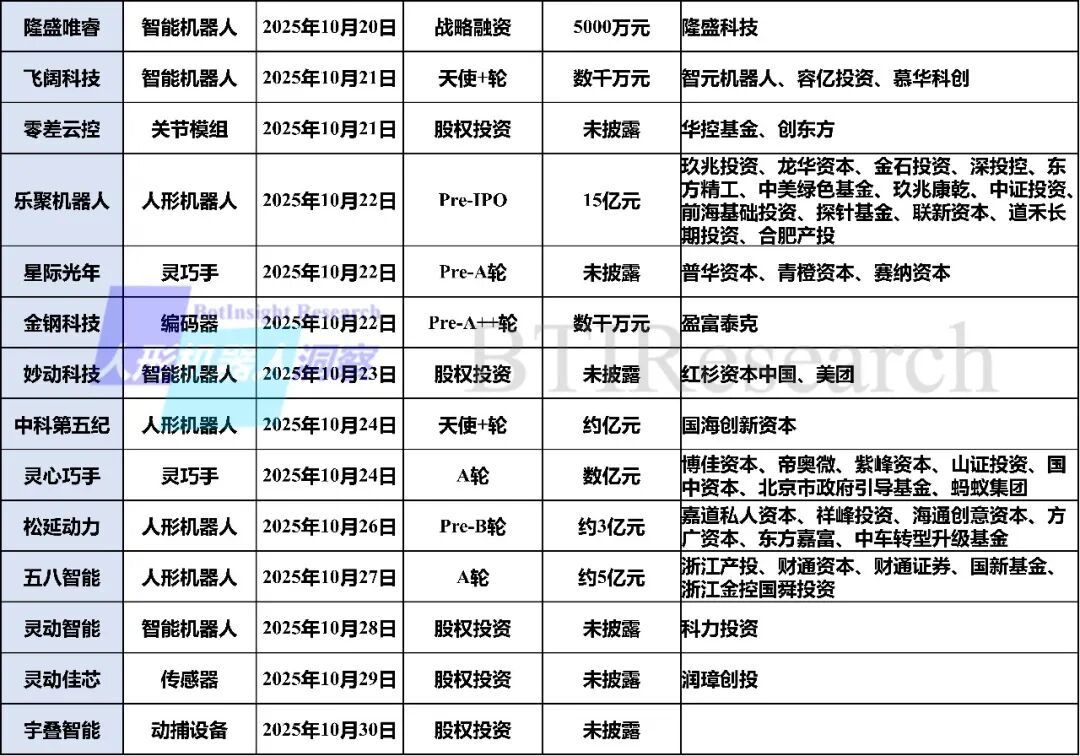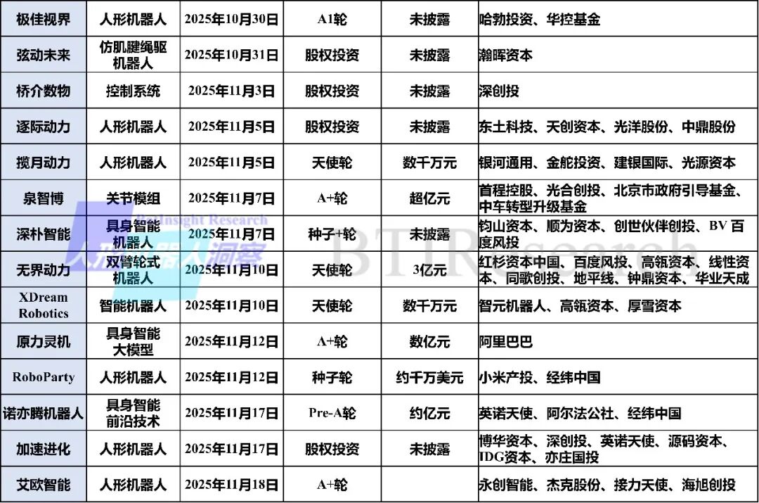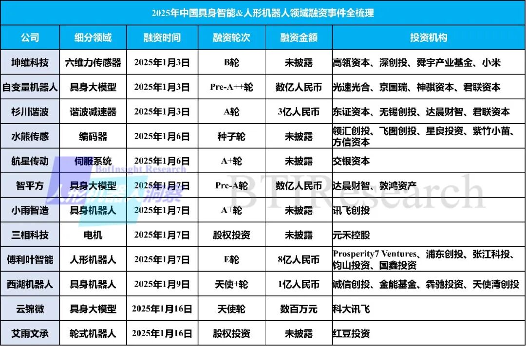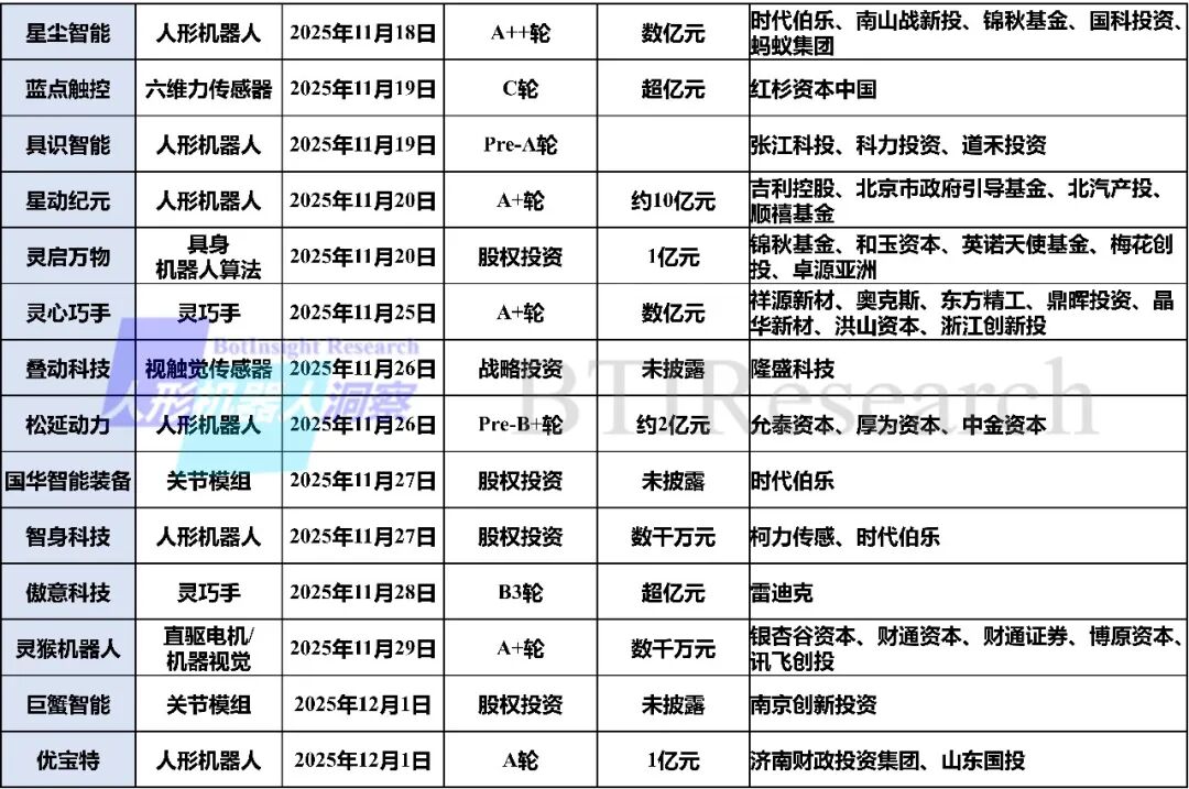 2025年中国具身智能与人形机器人领域融资活动空前活跃,全年共发生320起融资事件,覆盖产业链多细分领域。大额融资频现,投资方阵容多元且实力雄厚。