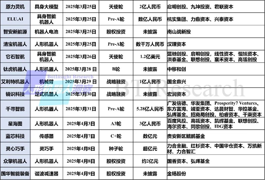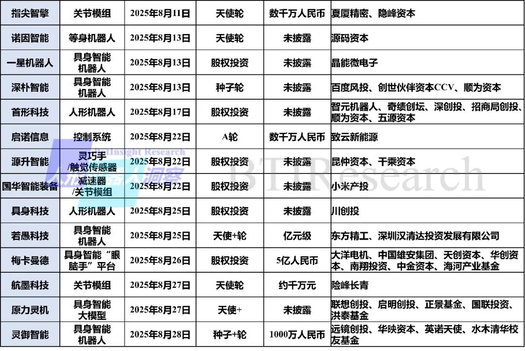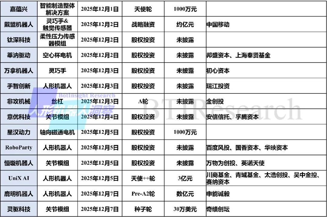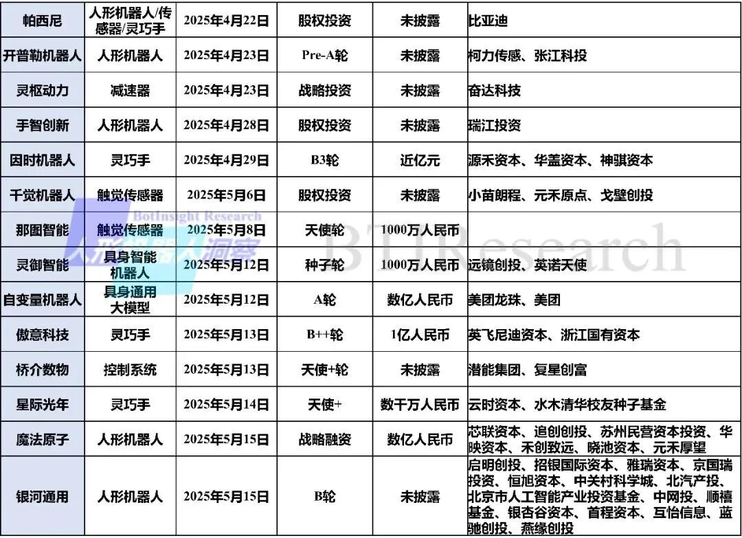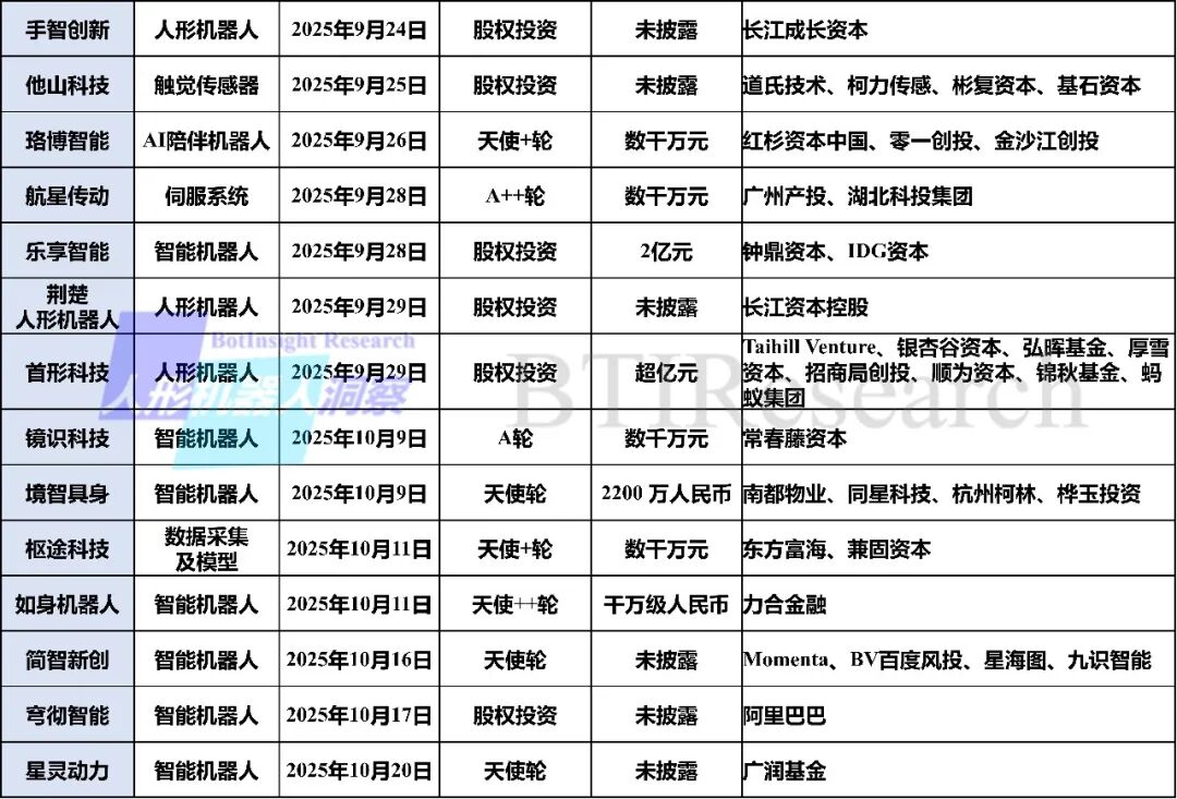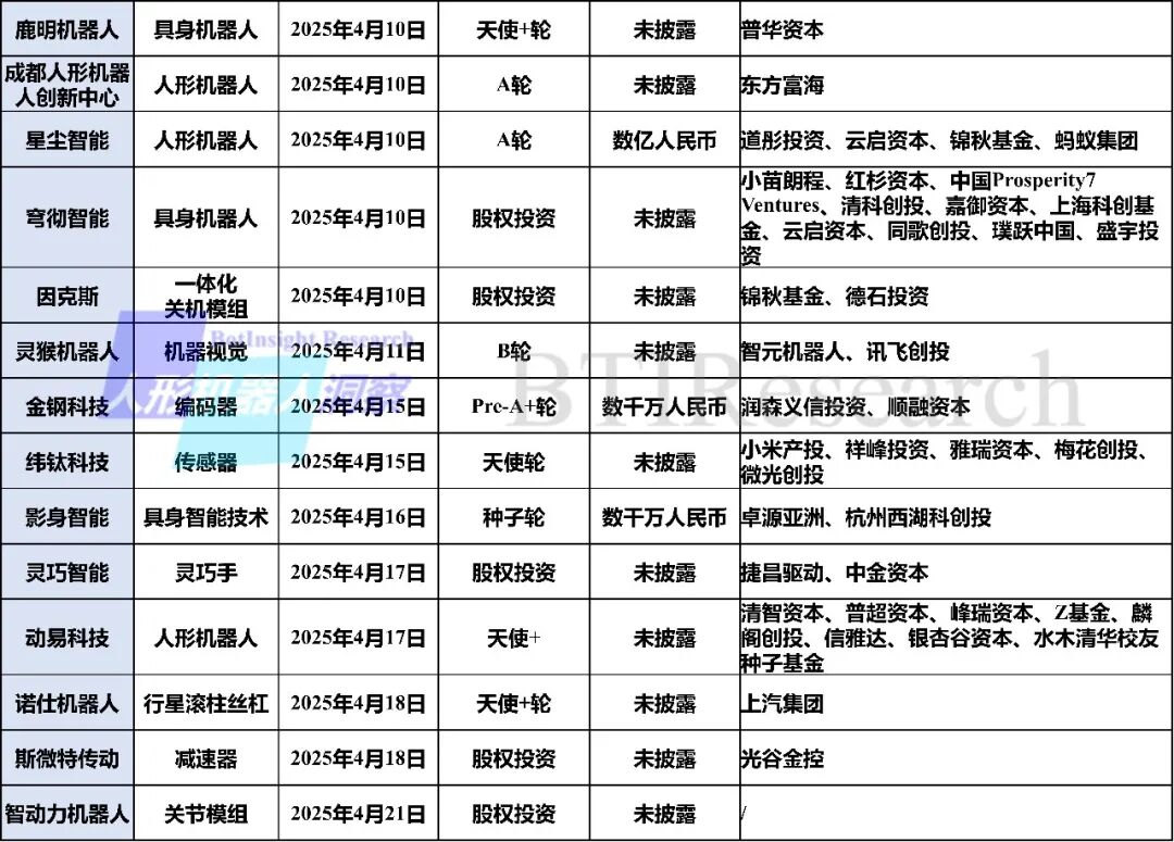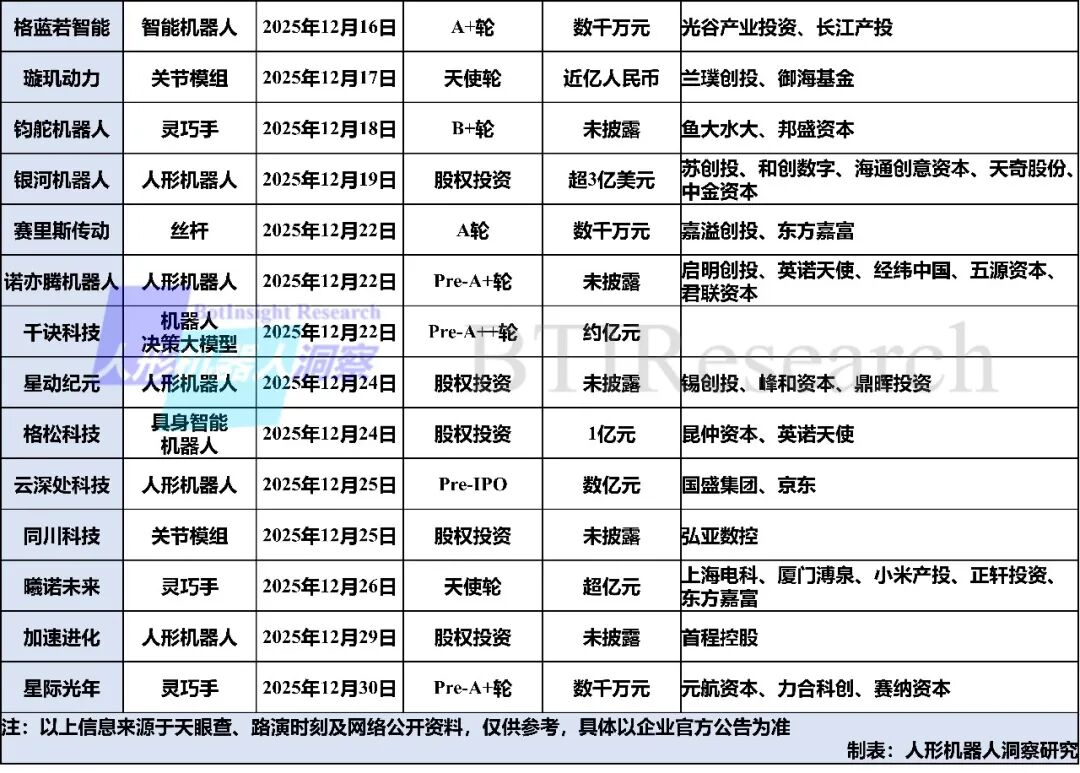 2025年中国具身智能与人形机器人领域融资活动空前活跃,全年共发生320起融资事件,覆盖产业链多细分领域。大额融资频现,投资方阵容多元且实力雄厚。