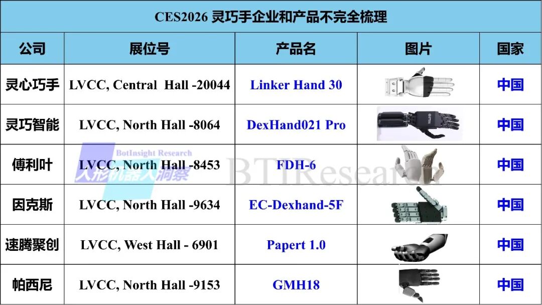 2026年CES展18款灵巧手盘点!