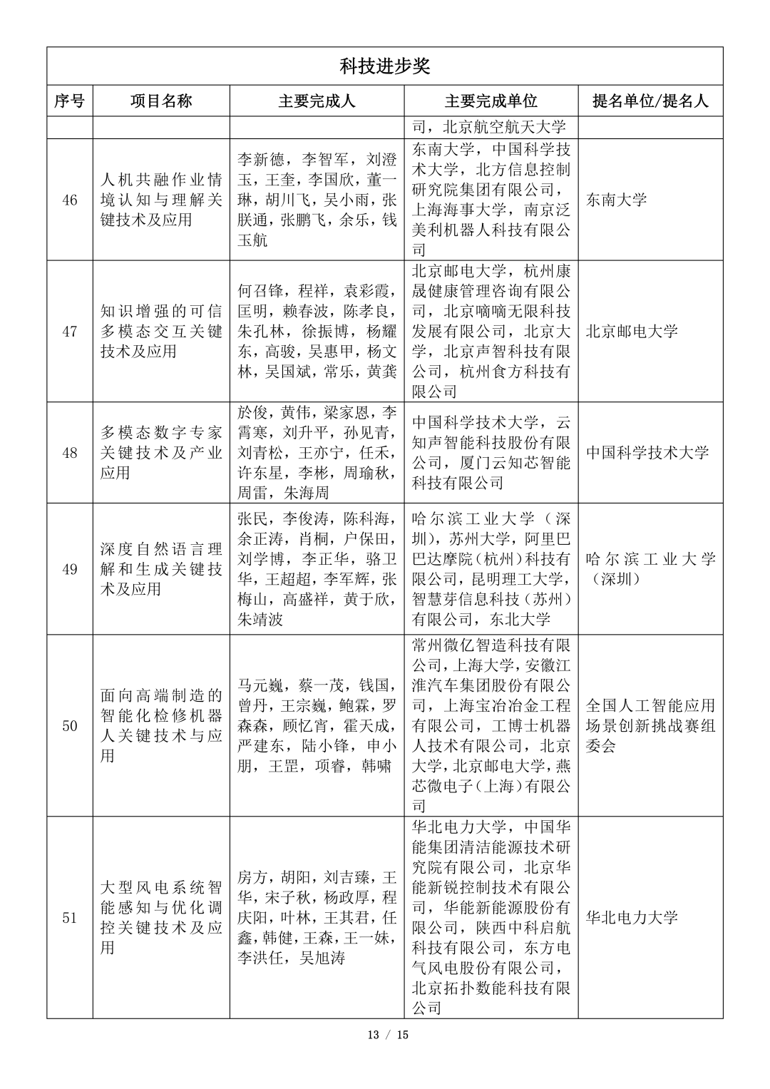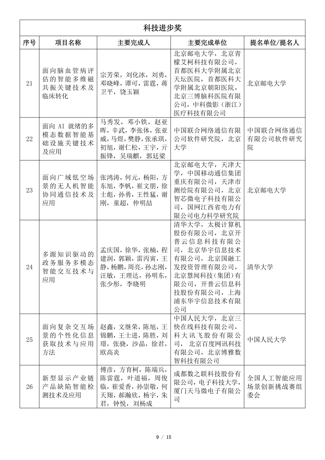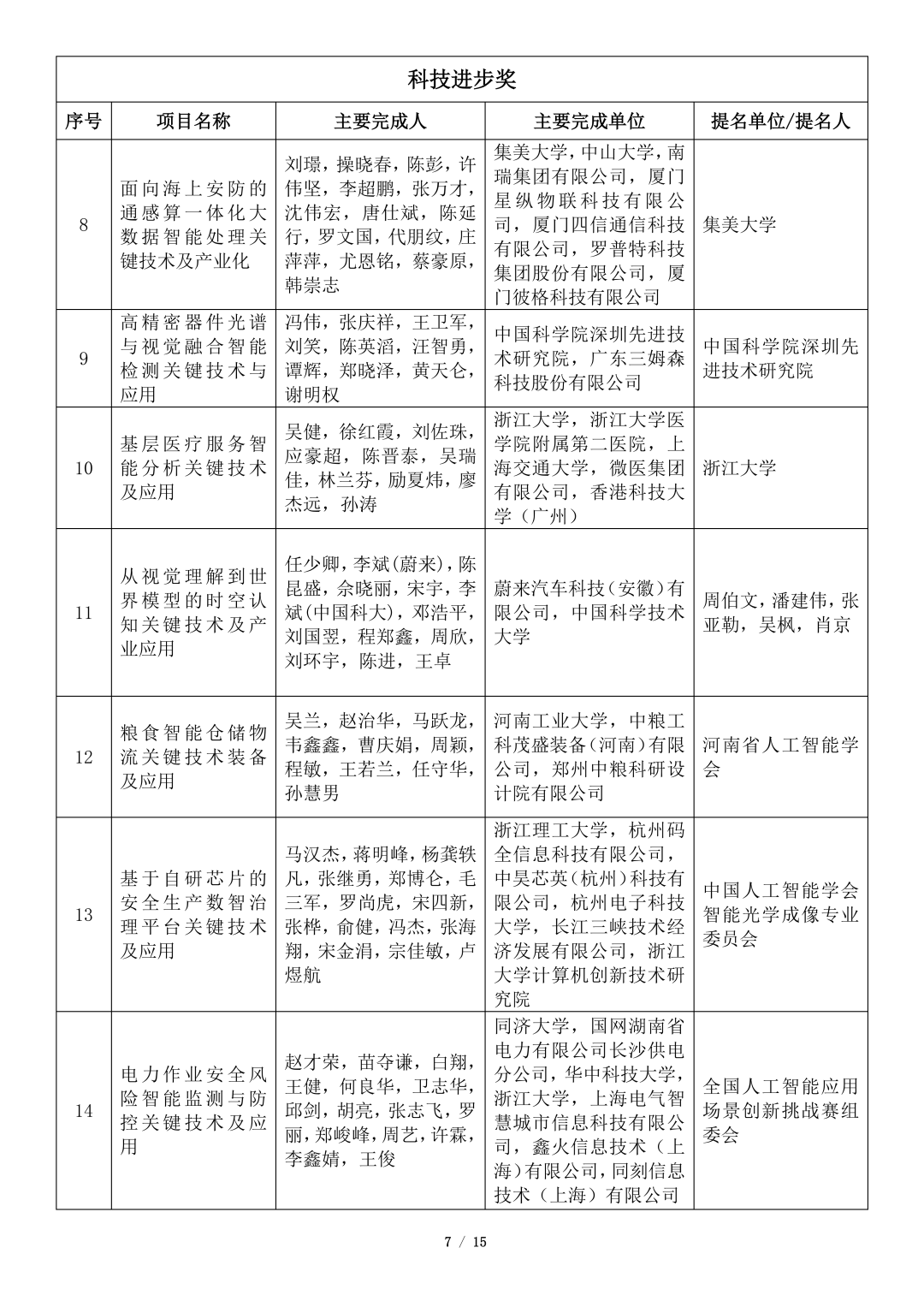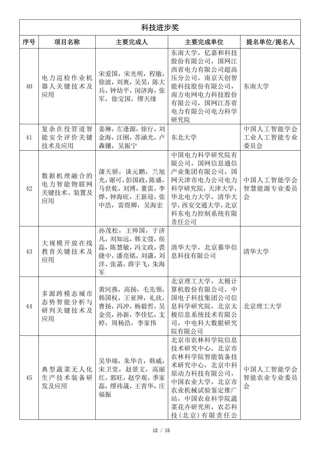 吴文俊人工智能科学技术奖初评项目公示