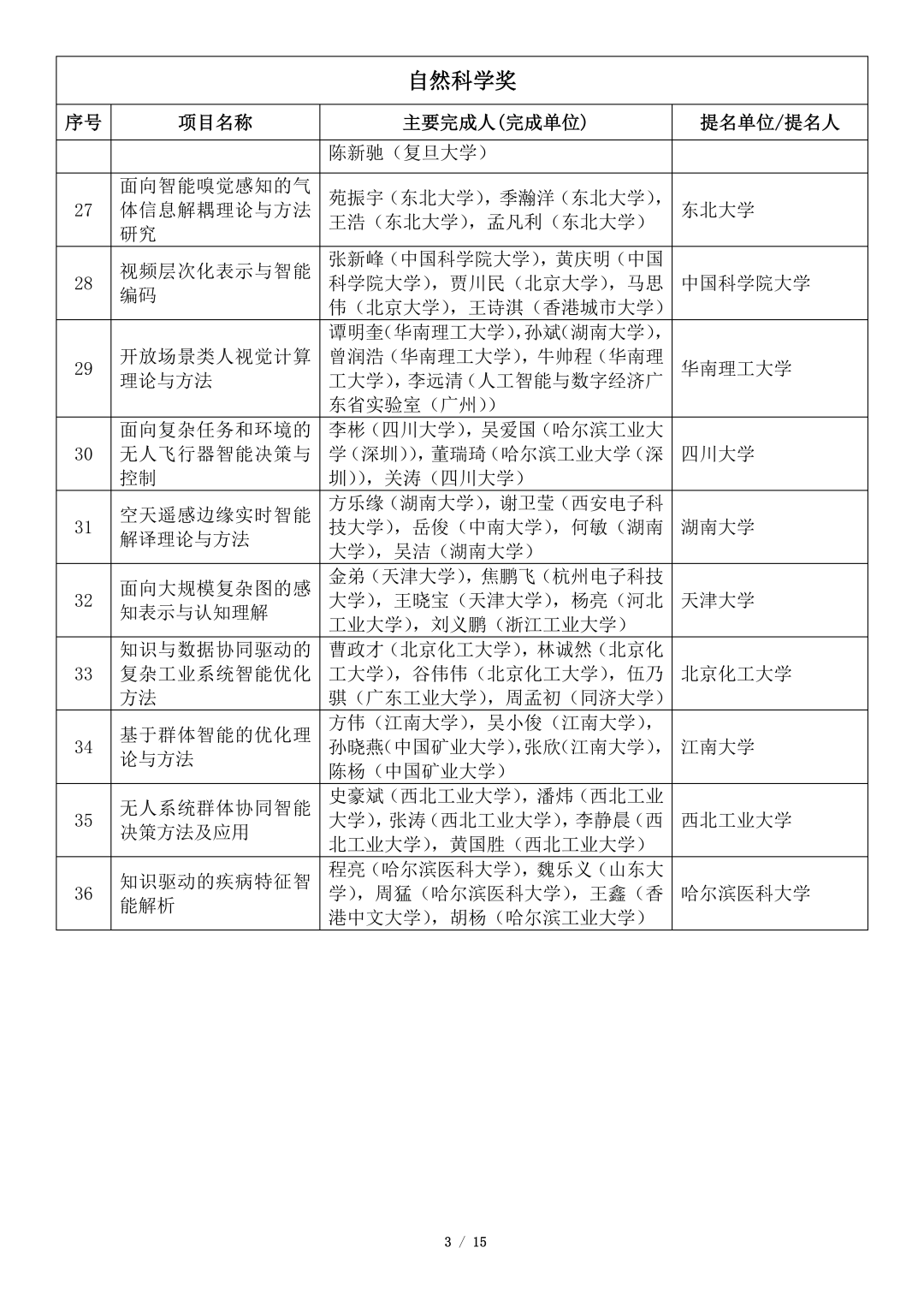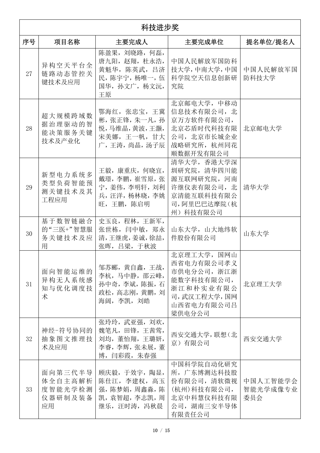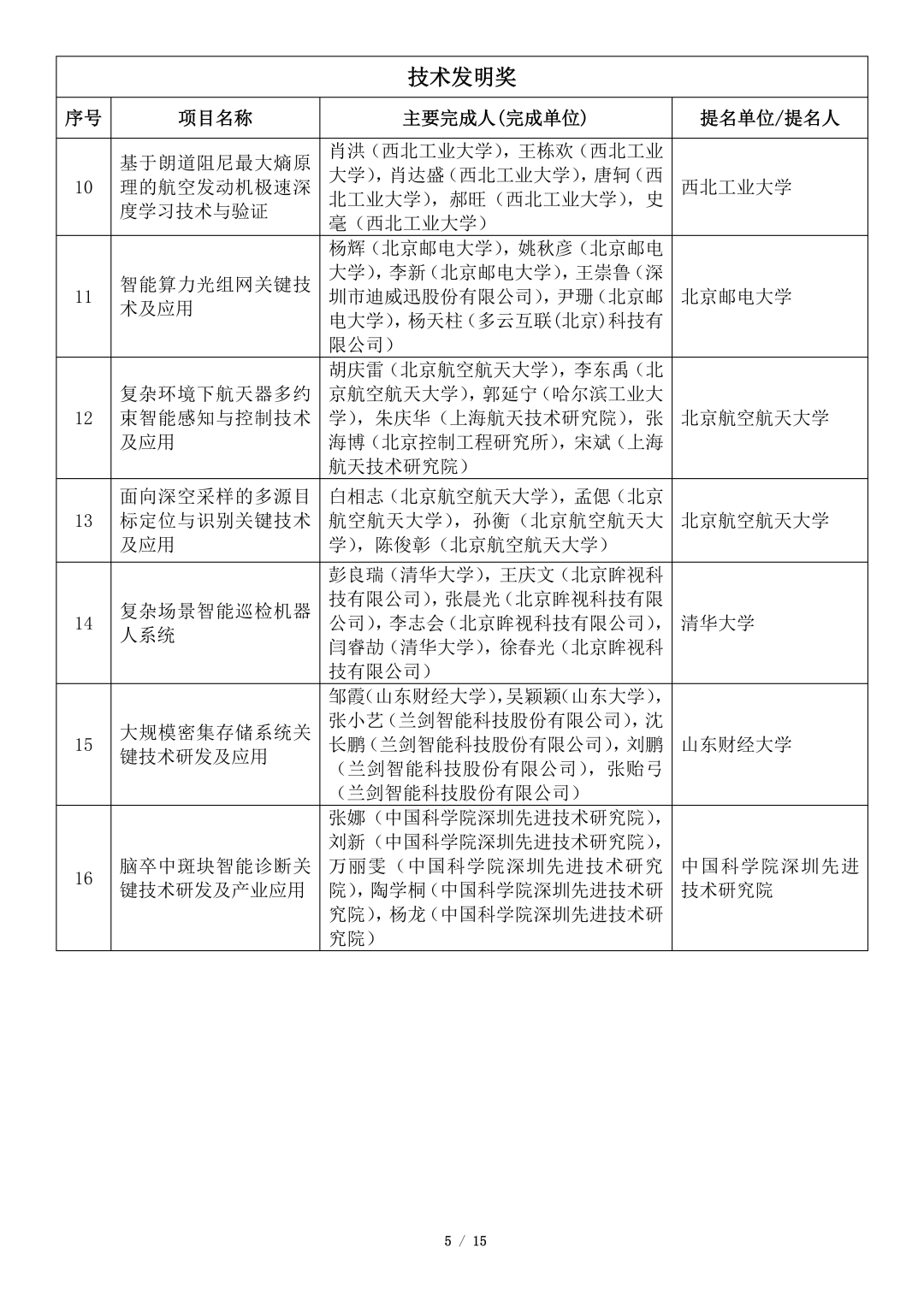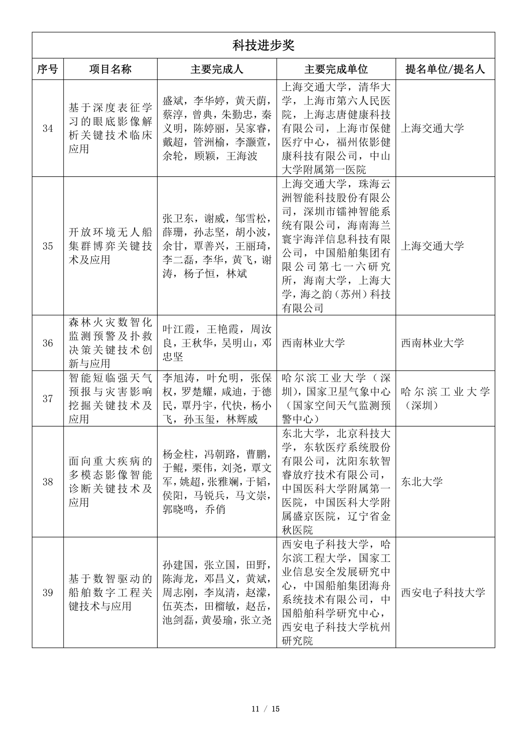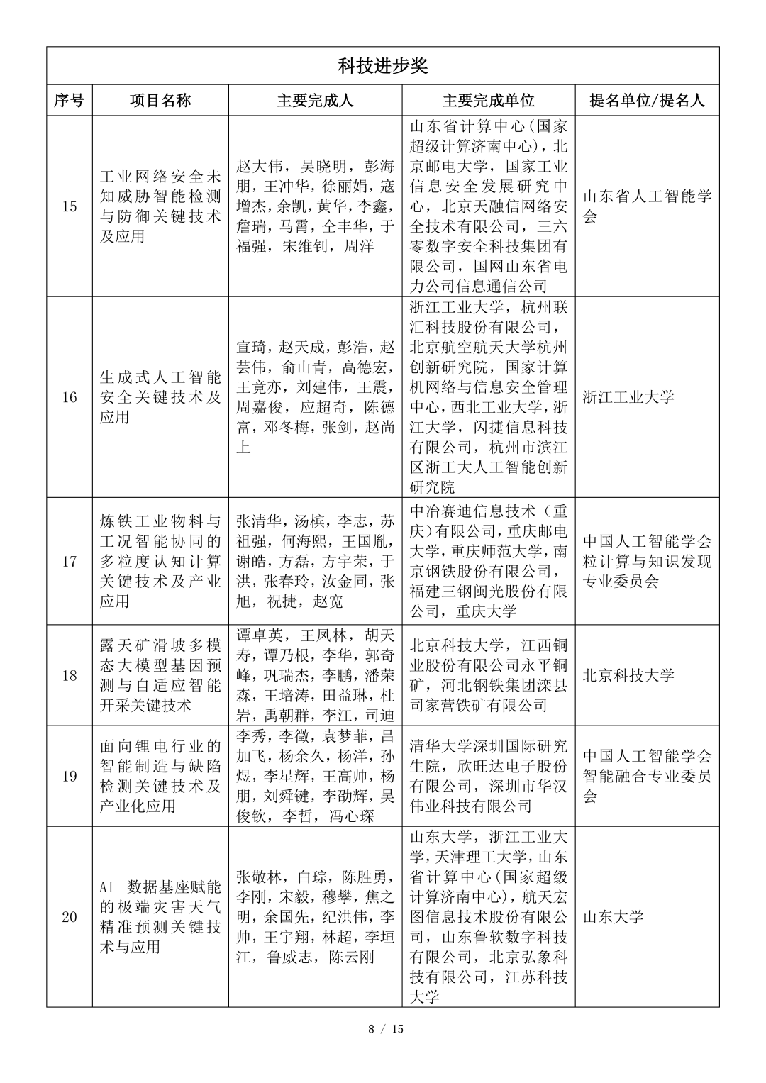 吴文俊人工智能科学技术奖初评项目公示