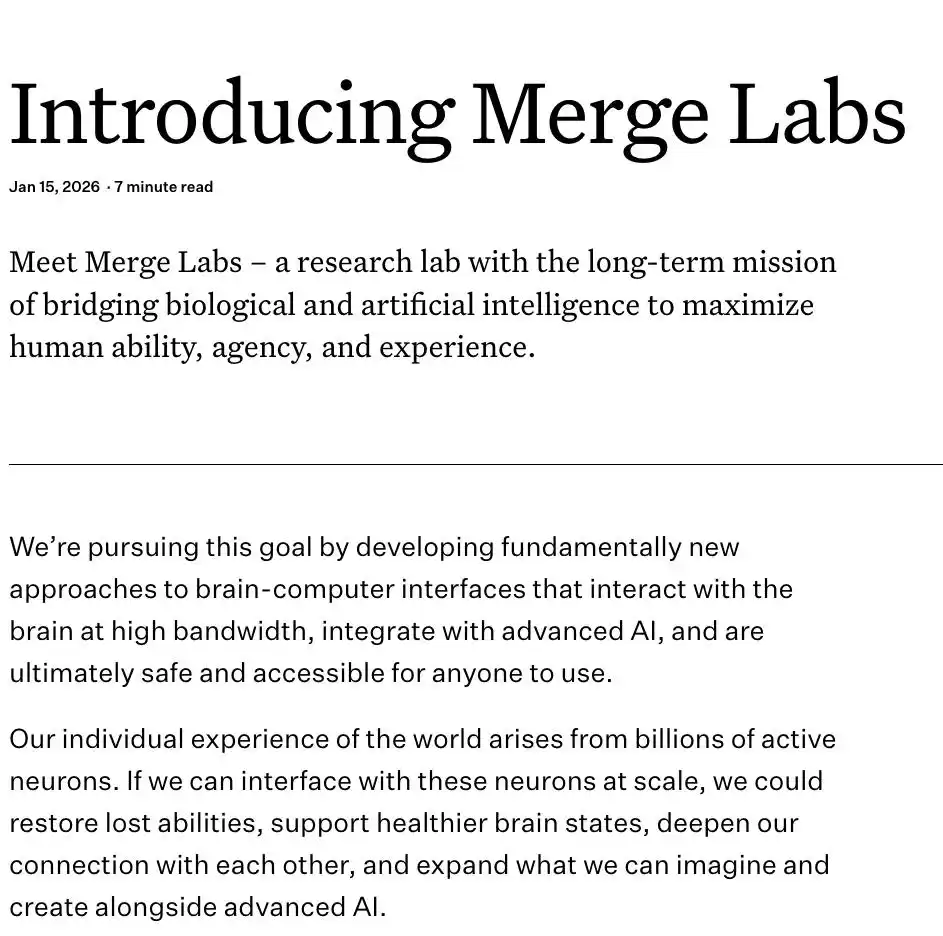 18亿融资入场!奥特曼超声脑机公司Merge Labs,与马斯克Neuralink竞逐脑机赛道