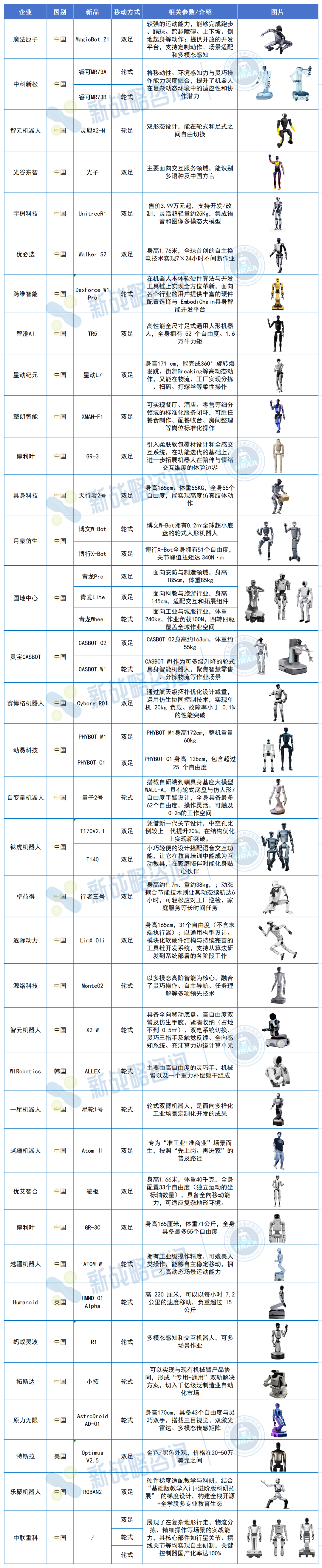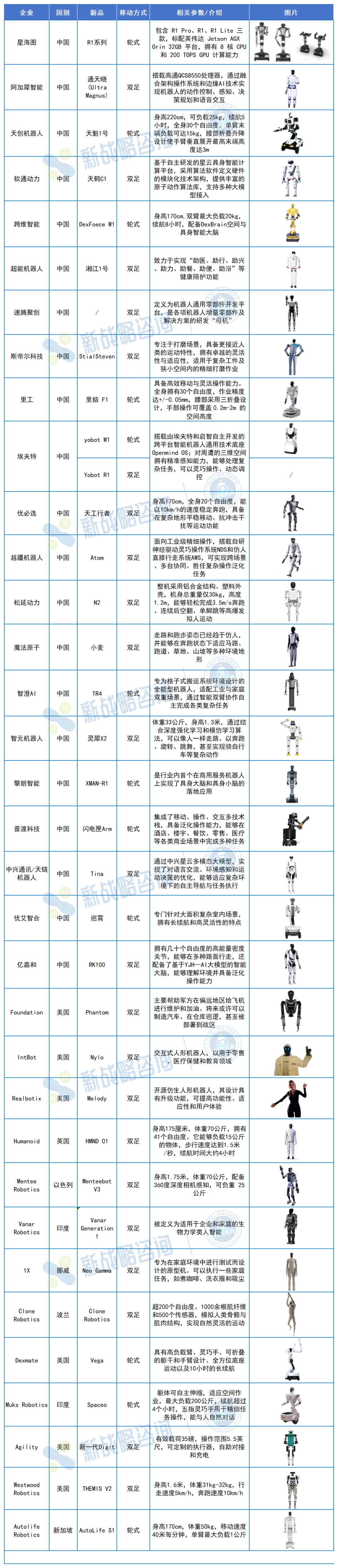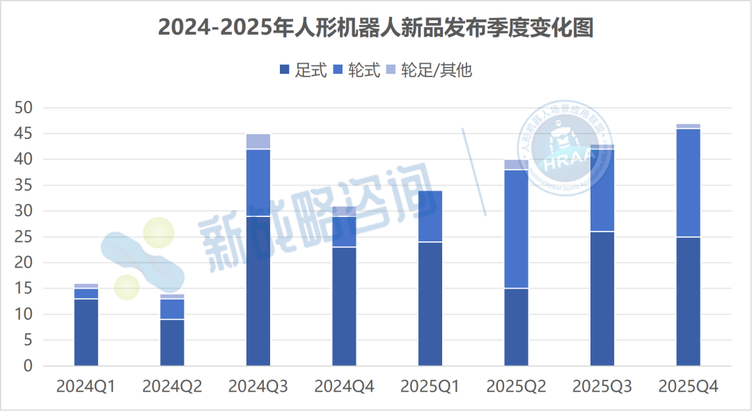 根据新战略移动机器人产业研究所、人形机器人场景应用联盟不完全统计,2025年全年,全球人形机器人整机新品发布数量已超过166款。 相比之下,2024年全球人形机器人整机新品发布数量为106款,增幅约56%。延伸阅读:百“人”大战!2024人形机器人新品全景图鉴 以下为2025年人形机器人整机新品盘点。鉴于新品数量庞大、图片信息较多,本文将按照季度进行梳理与呈现。 图表:2025年一季度人形机器人新品(根据网络公开信息整理,如有未完善之处请指正) 第二季度:超39款 图表:2025年二季度人形机器人新品(根据网络公开信息整理,如有未完善之处请指正) 第三季度:超45款 图表:2025年三季度人形机器人新品(根据网络公开信息整理,如有未完善之处请指正) 第四季度:超47款 从地域结构看,2025年全球人形机器人整机新品中,中国厂商发布127款,占比约75%;美国厂商12款,占比约7%;其他国家和地区合计30款,占比约18%。无论从绝对数量还是占比来看,中国均已成为全球人形机器人新品发布的核心区域。 这一优势来源于多重因素叠加:完整的零部件供应链、整机集成能力、密集的应用场景以及较低的试错成本,使中国厂商能够以更快节奏推进产品发布。新品数量的高占比,也意味着大量探索性方案在中国率先出现并被验证。 相比之下,海外厂商新品数量虽少,但往往聚焦高端双足、前沿控制或特定应用方向,强调路线选择而非规模扩张。2025年的人形机器人产业,已呈现出明显的“中国产品密度、海外技术深度”分工特征。 从移动方式看,2025年全球人形机器人整机新品中,双足产品84款,占比约49.7%;轮式产品78款,占比约46.2%;轮足及其他形态仅4款,占比不足2.5%。这意味着,行业已进入多形态并行阶段,双足不再是唯一解。 结合具体产品结构,目前行业已收敛出四种主流形态:全尺寸双足、中小尺寸双足、轮式底盘+折叠上肢,以及轮式底盘+升降结构。 其中,全尺寸双足更多承担技术示范与通用能力探索的角色,而中小尺寸双足则在成本、稳定性与控制复杂度之间寻找平衡。 轮式方案的快速增长,则反映出厂商对现实落地的主动妥协——在多数工业与服务场景中,稳定性、续航与负载能力,依然优先于“完全拟人”。延伸阅读:2025,轮式人形机器人爆发之年? 时间节奏:多峰化明显,轮式增速更快 从季度分布看,2025年人形机器人新品发布呈现出明显的多峰特征。足式机器人在Q1、Q3集中释放,而轮式机器人则在Q2、Q4显著增多,显示不同技术路线和产品定位在发布节奏上的差异化选择。 这一变化背后,一方面是人形机器人厂商数量迅速增加,发布行为不再高度集中于少数头部企业;另一方面,展会节点、融资窗口、场景试点进展,开始成为新品发布的重要触发因素。部分企业甚至形成了“半年一迭代”“一年两次亮相”的准产品节奏,而非单次概念发布。 整体来看,2025年人形机器人行业进入一个高频试错、快速迭代的新阶段。然而,在高频发布的人形机器人新品背后,也藏着“同质化”的隐忧。延伸阅读:人形机器人繁荣之外,同质化有多严重? 从产品定位看,2025年发布的人形机器人中,接近一半新品在发布阶段即明确应用方向或试点场景,而非仅展示运动能力或技术指标。与早期以“动作能力”为核心的产品相比,越来越多新品开始围绕搬运、巡检、接待、辅助操作等具体任务进行设计。 这种变化直接影响了形态选择。轮式及结构简化方案在新品中占比接近50%,其背后并非技术退步,而是对商业化路径的主动选择。即便是双足产品,其设计目标也从极限动作转向稳定行走、长时间运行和可维护性。 总体而言,2025年的人形机器人新品发布,已经从“证明能做到什么”,转向“验证能带来什么价值”。这也标志着行业正在从技术竞赛阶段,迈入以场景和效率为核心的产品竞争阶段。 166款新品,是2025年人形机器人产业交出的答卷。这一年,我们见证了形态的多元化、节奏的常态化、地区的极化,以及产品定位从“能动”到“能用”的转变。数量的爆发,本质上源自技术成熟、资本推动与场景倒逼的三重合力,而这也意味着产业红利窗口已经打开。 但回顾全年发布新品不难发现:真正具备长期生命力的产品,未必是最像人的,而是最接近真实需求的。2026年,将不再只是“谁能造出人形机器人”,而是“谁能让它留下来工作”。从拼参数、拼形态,到拼可靠性、拼服务闭环,产业的重心正在转向更复杂也更务实的问题。 量产之后,价值为王。真正的分水岭,才刚刚开始。 |