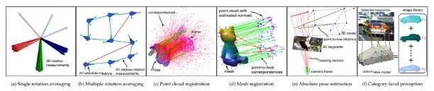 此前,他们的工作曾发表在 NeurIPS 2020 上,但当时,算法只解决了 4 个常见的感知问题。加上 STRIDE 后,他们尝试将算法拓展至更广泛的设置下进行,解决了 6 个感知问题,包括单点旋转均匀(single rotation averaging)、多点旋转均匀(multiple rotation averaging)、点云配准、网格配准、绝对姿态估计与分类感知。