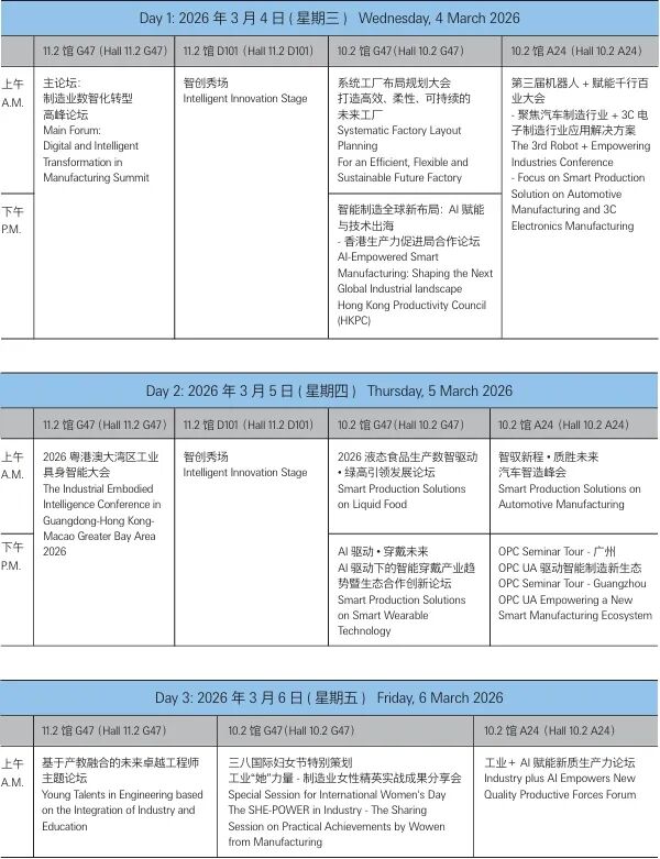 工业自动化行业开春第一展重磅启幕!作为SPS全球系列展及活动的重要布局之一,SPS 广州国际智能制造技术与装备展览会深度融合SPS全球网络的顶尖行业资源、前沿技术成果,立足华南制造业核心腹地,以国际化视野链接全球智能制造领域的标杆企业与创新技术,为华南制造产业搭建高标准的技术交流、商贸对接与创新合作平台,全方位赋能区域制造业向智能化、数字化、高端化转型升级,助力大湾区打造世界级智能制造产业集群。 2026年3月4至6日,新一届展会将在广州?广交会展馆B区盛大举办,同期举办Asiamold Select亚洲国际模具展和GIT广州工业科技展,三展汇聚500多家国内外行业知名品牌,带来前沿的驱动系统及零部件、传感技术、控制技术、连接技术、工业通讯、工业机器人等新产品新技术与解决方案。诚邀全球智造领域精英企业、行业大咖与专业观众共赴盛会,共探产业发展新机遇。 预登记进入倒计时 扫码预约免费参观 500+全球智造品牌厂商已蓄势待发、重磅集结!展会汇聚德国、美国、韩国、俄罗斯等国家及地区实力展商,包括安费诺/康耐、奥托尼克斯、奥松电子、艾乐博机器人、宾德、堡盟、长仁、德恩科、德夫尔、鼎实、达意隆、鼎捷软件、费斯托、福斯哲、馥融传动、广州数控、高诚、国家地方共建具身智能机器人创新中心(北京人形机器人创新中心有限公司)、合熠智能、虹润、汉伯特、加玮、佳尔灵、精奇、精研技术、矩控新辰、康耐视、科迪通达、科力光电、科瑞、伦茨、徕木电子、凌翔磁浮、领航机器人、零点、沥拓、贸泽电子、米思米、明治传感、诺万特/ATI工业自动化、瑞松机器人、荣越电气、深浦、深视智能、神驰、视界纵横、思谷智能、盛格纳、思沛泽、燧石(睿创微纳智能光电品牌)、图尔克、台春、天立、同创、TAU Tracker、万捷电子、沃申道夫、魏德电气、熊大、翌楷斯、意普兴、云物智联、尤提乐、远洋光电等,带来控制技术、传动、传感技术及机器视觉、连接技术、人机界面、机械基础设施、工业软件及IT、工业通讯、工业机器人及其核心零部件、智能装备等产品及解决方案。 多元展区聚能 硬核实力全维绽放 智创未来展区及智创秀场 集结康耐视、伦茨、图尔克、堡盟、费斯托、诺万特/ATI工业自动化等国际标杆品牌,以顶尖传感、传动、控制技术为核心,打造智能制造前沿技术展示高地,呈现全品类成熟智造解决方案。同步开启品牌专场演讲,头部大咖现场解读新产品、新技术,全品类成熟智造解决方案干货直推,解锁智造升级核心密码! 具身智能展区 徕木电子、瑞松机器人、智澄英达、琼琪自动化、征和机器人、国家地方共建具身智能机器人创新中心(北京人形机器人创新中心有限公司)组团亮相,聚焦人形机器人、具身智能核心技术,打造前沿赛道技术交流与成果展示核心阵地。 国际展团 翌楷斯、沃申道夫、TAU Tracker 等国际品牌应邀参展,携先进智造技术重磅亮相,带来国际前沿精密智造解决方案,为全球智能制造技术交流与产业合作搭建专业高效的对接平台。 初创专区 汇聚清卓动力机器人、矩控新辰、圣科瑞雅等新锐力量,聚焦智造领域创新技术与成果,解锁行业新势力的技术突破与落地潜力。 广州市开发区黄埔展团 全息时代、朗吉电子、铭钰科技、方瞳科技、千越飞鸿、韦德电气、达意隆、福斯哲、建勤信息、鼎捷软件、奥松电子、粤港澳大湾区国家技术创新中心(泊沧数据)等十二家企业集群参展,彰显黄埔区智能制造产业生态优势,呈现区域内软硬件协同、数智融合的全链条智造实力。 佛山市机械装备基地展团 海特德工、艾乐博机器人、远洋光电、佰力得、创兴精密、元通线缆等企业齐聚,聚焦机械装备核心零部件与智能装备研发制造,展现佛山机械装备产业的硬核制造实力与产业配套优势。 数智论坛矩阵 共探产业新局 SPS 广州智能制造展同期重磅打造12大专业论坛,以制造业数智化转型为主轴,聚焦具身智能、工业AI、数字孪生、工业网络安全等前沿赛道,覆盖汽车制造、智能穿戴、食品饮料等垂直领域,联动 OPC UA 生态建设、未来工厂规划、产教融合等核心议题,更设技术出海、机器人+、工业女性力量等特色专场,汇聚全球智造智慧,为产业升级提供全维度思路与落地解法。 2026展会同期论坛: 主论坛:制造业数智化转型高峰论坛 智创秀场 2026 粤港澳大湾区工业具身智能大会 智能制造全球新布局:AI赋能与技术出海 第三届机器人+ 赋能千行百业大会 智驭新程·质胜未来 汽车智造峰会 AI驱动·穿戴未来 AI驱动下的智能穿戴产业趋势暨生态合作创新论坛 OPC Seminar Tour – 广州 OPC UA 驱动智能制造新生态 2026液态食品生产数智驱动 · 绿高引领发展论坛 基于产教融合的未来卓越工程师主题论坛 三八国际妇女节特别策划 工业“她”力量 - 制造业女性精英实战成果分享会 系统工厂布局规划大会:打造高效、柔性、可持续的未来工厂 工业+AI赋能新质生产力论坛 *现场活动日程安排以现场公布为准 如需了解同期活动详细议程及地点,请点击下面的小程序查看: (点击图片,跳转到小程序) 赋能30+应用行业 一站式智造升级方案 展会面向传统汽车制造、新能源汽车制造、汽车/摩托车零部件制造、3C电子、半导体、机器人、机床制造、工程机械、建筑机械、电力工程与设备、传统能源(煤