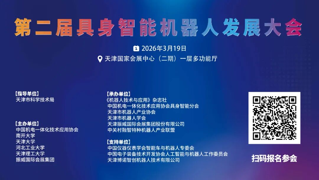 这是“十五五”开局之年,也是具身智能从“概念宠儿”迈入“产业风口”的关键转折点。在这个顶层设计与技术突破同频共振的历史性时刻,第二届具身智能机器人发展大会应势而来——2026年3月19日,天津,汇聚近千名行业先锋,共探从技术爆发到规模商用的实战路径。 聚焦当下:产业正迎来“突围”时刻过去一年,具身智能领域的进展超出了最乐观的预期。 政策层面,顶层设计的清晰度前所未有。2025年12月,工信部成立人形机器人与具身智能标准化技术委员会;2026年2月,我国首个覆盖人形机器人全产业链的《人形机器人与具身智能标准体系(2026版)》正式发布,从关节接口的毫米级公差到安全伦理的红线划定,制订了200余项细则。国家发展改革委也已会同有关部门深入研究,将结合“十五五”相关专项规划的编制工作,推动具身智能产业健康规范发展。 技术层面,行业正在数据驱动下进行多路径探索。从春晚舞台上数十台人形机器人以4米/秒的速度奔跑穿插、与武术演员上演“人机共武”,到北京通用人工智能研究院的OmniXtreme框架让机器人成功解锁后空翻、托马斯全旋等数十种高难度动作——如果说大语言模型解决了AI“怎么想”的问题,那么过去一年最大的突破,就是初步解决了AI“怎么动”的问题。 资本层面,市场热情持续高涨。中国信息通信研究院联合清华大学电子工程系发布的《具身智能发展报告(2025年)》指出,2025年,我国具身智能和机器人领域融资总额达735.43亿元人民币,投资事件共744起。开年以来,银河通用机器人宣布完成25亿元新一轮融资,累计融资额稳居中国具身智能领域首位;帕西尼感知科技完成超10亿元B轮融资,成为第八家跻身“百亿估值俱乐部”的国内具身智能企业。资本的加注,是对产业前景最直接的背书。 场景层面,商业化落地正在加速。优必选人形机器人2025年订单突破14亿元,进入航空制造、汽车制造、3C电子等五大高端场景;智元机器人已实现八大典型场景落地应用,2025年出货量与市场份额两项关键指标均位居全球第一。在江苏银行,夸父机器人为老年客户讲解业务流程;在浙江乐清的生产车间,轮式人形机器人娴熟地搬运物料。“在特定的产品和相对封闭的场景中,具身智能已经能够初步形成商业化闭环。”北京智源人工智能研究院院长王仲远如是判断。 回首首届:我们一起见证“破冰”时间回到2025年3月,天津。首届具身智能机器人发展大会在业界的热切期盼中拉开帷幕。那是2025年中国具身智能领域第一次大规模的产业集结——院士专家畅谈“软件硬件双向奔赴”的生动图景,产业链上下游共同探讨从实验室走向现实的路径,上海具身智能产业与创新联盟正式成立。 那一届大会,我们共同见证了具身智能从学术概念走向产业共识的“破冰”时刻。我们在那时谈论的是“变形金刚有了灵魂”,是机器人像婴儿一样试错学习的过程,是建设太空4S店的“小目标”。如今回望,那场盛会如同一声发令枪,为之后一年的狂奔拉开了序幕。 如果说第一届大会我们共同见证了概念的破冰,那么第二届大会,我们将聚焦从技术突破到产业落地的核心命题。 2026年3月19日,天津。 由中国机电一体化技术应用协会、南开大学、天津大学、河北工业大学、天津理工大学联合主办的第二届具身智能机器人发展大会,将以“场景驱动,量产突围:解锁具身智能发展新动能”为主题,搭建一个集趋势发布、深度对话、成果展示与精准对接于一体的高端平台,深度剖析技术到商业的跨越路径,加速我国具身智能产业的规模化、商业化进程。 这将是一次与以往不同的行业盛会: 我们不再空谈概念,而是聚焦“场景驱动”。大会将重点挖掘具身智能在工业制造、特种作业、商业服务、民生养老等领域的真实落地场景,邀请来自应用端的头部企业,分享他们在产线升级、降本增效中的实际需求与痛点。 我们不再沉迷炫技,而是聚焦“量产突围”。 从实验室的“一鸣惊人”到工厂里的“万台下线”,中间横亘着工程化、成本控制、供应链协同的层层难关。优必选已提出2026年实现万台级产能的目标,智平方自有产线已实现千台年产能并向万台迈进——这些“实战派”的经验与教训,将在大会上首次集中分享。 我们不再各自为战,而是推动“精准对接”。 针对行业普遍存在的“新兴需求找不到合适供应商,传统企业有产能却摸不准门路”的痛点,大会特别规划平行精准对接会,推动创新企业与场景方、供应链巨头与新兴力量之间的高效合作。 全国政协委员、奇安信集团董事长齐向东的判断是:具身智能正站在产业规模化的前夜。全国人大代表、小米集团创始人雷军则相信,“未来几年里,会有更多人形机器人大规模进入工厂工作”。 从“破冰”到“突围”,从“技术验证”到“规模商用”,中国具身智能产业正站在全球竞逐的新起点上。在“十五五”开局之年,当国家战略的东风已然吹起,当技术突破的浪潮奔腾而至,我们诚挚邀请每一位具身智能的探索者、建设者与推动者,齐聚津门。 2026年3月19日,天津。让我们以场景为锚,以量产为帆,共同解锁中国具身智能发展的澎湃新动能。 时间地点 会议时间:2026年3月19日 会议地点:天津国家会展中心(二期)一层多功能厅 组织机构 指导单位: 天津市科学技术局 主办单位: 中国机电一体化技术应用协会 南开大学 天津