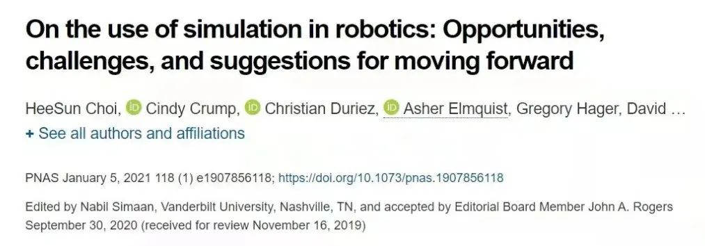 图|模拟失重状态下物体运动(来源:DeepMind) 对于DeepMind选择收购MuJoCo的原因,也许我们可以从发表在PNAS上的一篇论文中窥见一二。 相关论文以《关于在机器人中使用模拟:机遇、挑战和前进的建议》(Ontheuseofsimulationinrobotics:Opportunities,challenges,andsuggestionsformovingforward)为题发表在PNAS上,第一作者为宾夕法尼亚大学博士后研究员崔熙顺(HeeSunChoi)。
