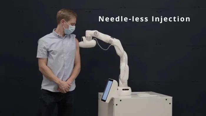 Cobionix公司希望制造一个多功能的机器人,该机器人可以被更新和重新配置,以服务于多种用途。为了展示它的多功能性,该公司将其设置为注射疫苗,如COVID-19疫苗。 并为机器人配备了一种无需使用针头就能提供疫苗的方法。Cobionix公司将其机器人与另一家公司开发的无针注射技术相搭配。这种方法使用高压流体喷射,将疫苗直接注入组织。这种方法不会在病人身上留下任何明显的痕迹。 该机器人不需要通过医生运行,而是完全自主的。机器人通过使用手中的激光雷达传感器来扫描病人。然后,利用这些信息来创建他们身体的3D“地图”,通过分析“地图”,确定注射的最佳位置。 Cobi还为病人提供指示,帮助他们为注射做准备。这些指示将告诉病人站在哪里,以及他们是否需要为注射脱掉外套。