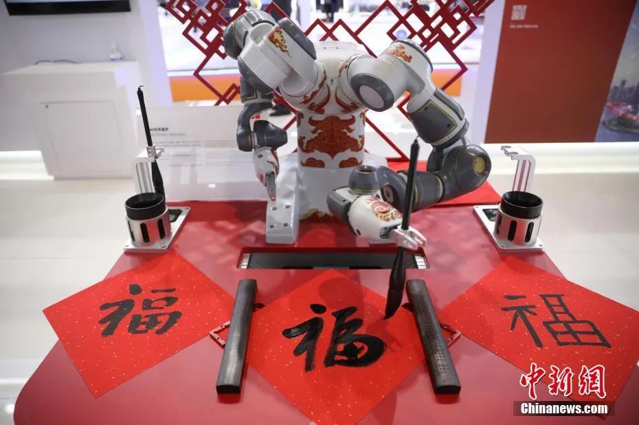 智能及高端装备展区ABB展台的机器人书写“福”字。