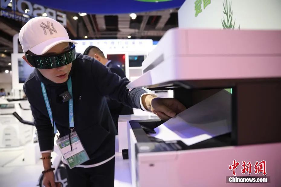 智能及高端装备展区EPSON展台展示全球首创的干纤维纸张循环系统与冷印技术的墨仓式复合机组合,实现打印输出到循环再生的全生命周期闭环管理。