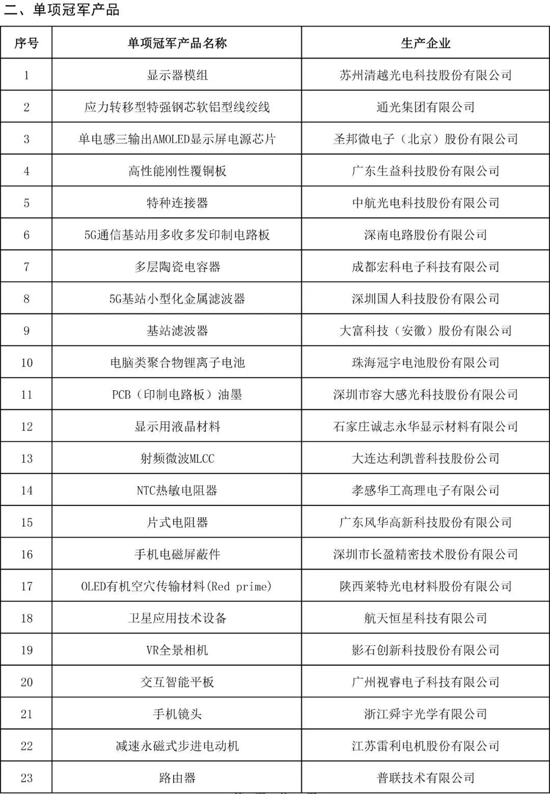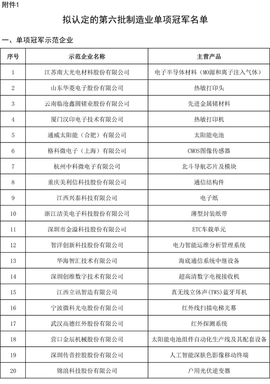 11月8日,工信部示公示制造业单项冠军第六批遴选企业名单,共拟认定118家单项冠军示范企业,141个单项冠军产品。以下是具体名单。