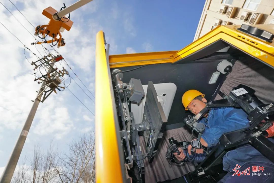 2021年12月13日,山东烟台首次使用配电网带电作业机器人,成功对线路进行了不断电维护作业。配电网带电作业机器人是一种能够在高空带电线路上进行作业的特种机器人,工作人员可通过地面控制室遥控机器人完成线路上的带电作业,能有效降低安全风险,提升作业效率,使带电作业智能化、常态化。
