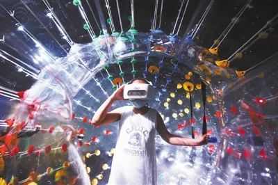 图片来源:视觉中国 8月11日,在浙江美术馆的《算法速成斑》特展上的“抱堡球”里,小观众通过VR眼镜观看不同算法下的AI世界。