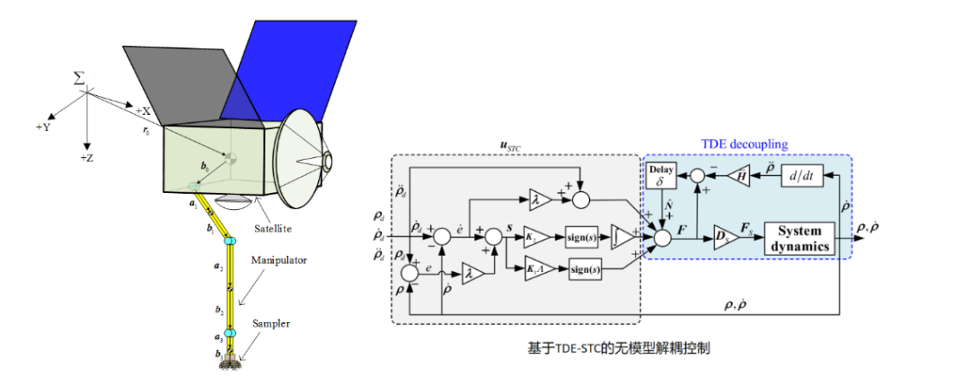近日,中国科学院沈阳自动化研究所在空间机器人自主操控方面取得进展,针对航天器平台和机械臂的动力学耦合提出基于时延估计的无模型解耦控制算法,相关研究成果以Attitude Decoupling Control of Semifloating Space Robots Using Time-Delay Estimation and Supertwisting Control为题,发表在IEEE Transactions on Aerospace and Electronic Systems上。 由于外太空高低温、超真空、强辐射等恶劣环境,由航天器和机械臂组成的空间机器人系统具备航天器的机动能力和机械臂的操作能力,未来将广泛应用于在轨服务和深空探测领域。空间机器人可承载大量的自主操作任务,如抓捕、装配、搬运以及采样返回等。对于此类机器人,航天器平台和机械臂之间存在复杂的动力学耦合作用,影响机械臂末端的操作精度。因此,如何有效抑制或补偿基—臂耦合作用是空间机器人领域的热点和难点问题。 为此,沈阳自动化所空间自动化技术研究室科研人员基于时延估计(Time-delay estimation, TDE)算法和超扭转控制(Super-twisting control, STC),提出一种无模型鲁棒解耦控制算法。该方法本质为瞬态学习控制算法,通过引入常数对角阵对动力学模型进行改造,将新模型划分为线性项和新非线性项,利用模型前一时刻的观测信息和控制输入来估计当前时刻系统的新非线性项,实现系统高效解耦。该方法优点在于不需要实时计算系统模型参数,算法具有内在自适应性,计算效率高。该成果将为后续开展空间机器人在轨服务和深空探测任务提供理论基础和技术支撑。