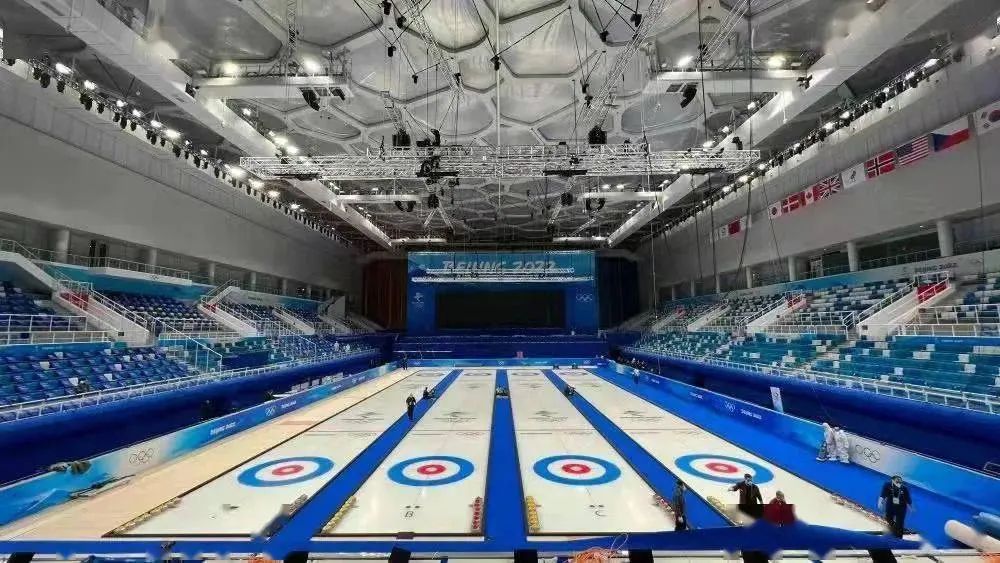 图源:视觉中国 “水冰转换”的背后,依靠的是可转换结构体系以及可拆装制冰系统等技术的创新应用。 通过支撑冰面的可转换钢结构,实现从“水立方”到“冰立方”,从泳道到冰壶赛道的转化,保证冰面在稳定牢固的同时还能达到冬奥会比赛要求。据了解,可转换钢结构由2600根3米高、2米长的薄壁H型钢搭建而成,每根梁柱装有柱脚,每个连接点装有可拆卸高强度螺丝,确保钢架坚固结实。试验结果显示,每平方米增加1吨荷载,钢结构的最大变形仅有1.6毫米,符合3毫米以内的设计要求。 “水立方”变身“冰立方”,关键的环节是制冰。为了保证赛时万无一失,场馆采用制冰机组“两用一备”的方案,即赛场旁边有两组管道,一进一回形成回路;制冰基础层上密密麻麻有序铺装的制冰排管;室外制冷机组将载冷剂通过管道循环输送至制冰场,保证赛场制冰顺利进行。 “水立方”作为游泳和跳水等水上运动项目的比赛场馆,赛时环境是高温高湿,到了“冰立方”,冰壶比赛的赛场环境要求是低温低湿。为保证低温低湿的比赛场馆环境,本次场馆改造了除湿系统,源源不断地将干冷空气送入比赛大厅,将大厅内的湿热空气带出去。