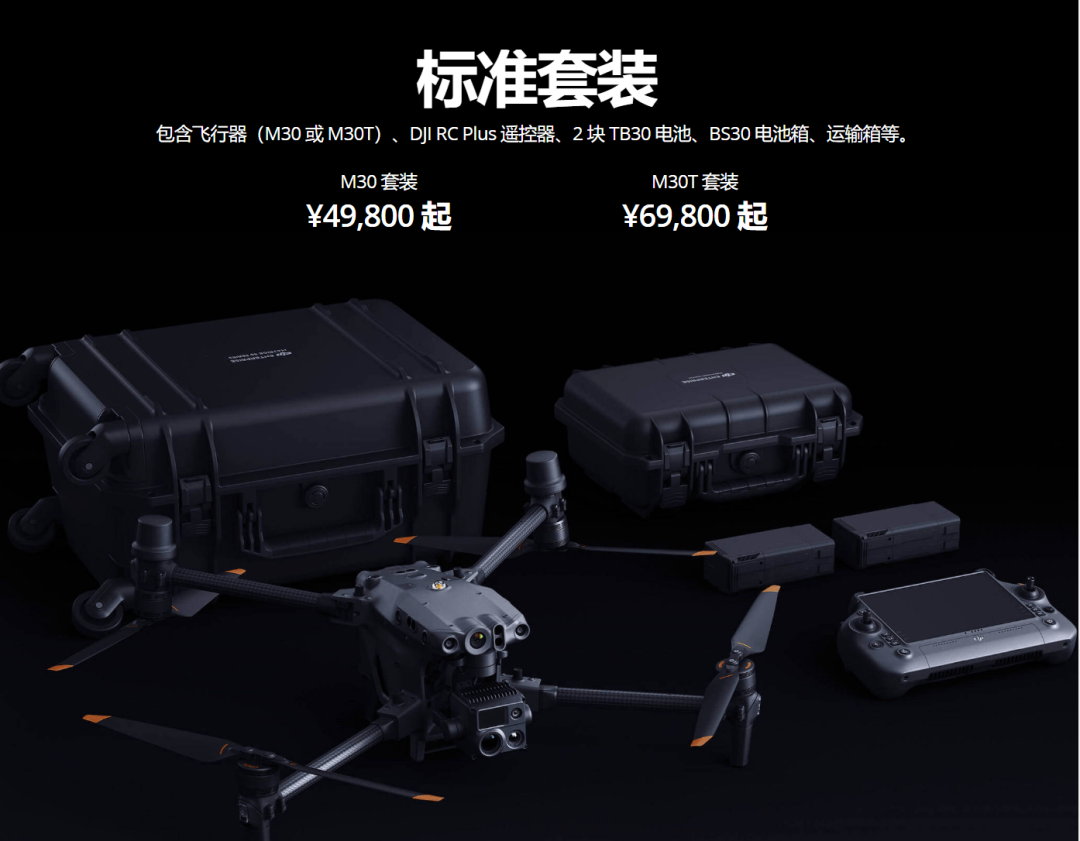 3月21日,在“致守护者”发布会上,大疆正式推出了经纬M30系列无人机,包括M30、M30T两款型号,套装价分别为49800元、69800元。