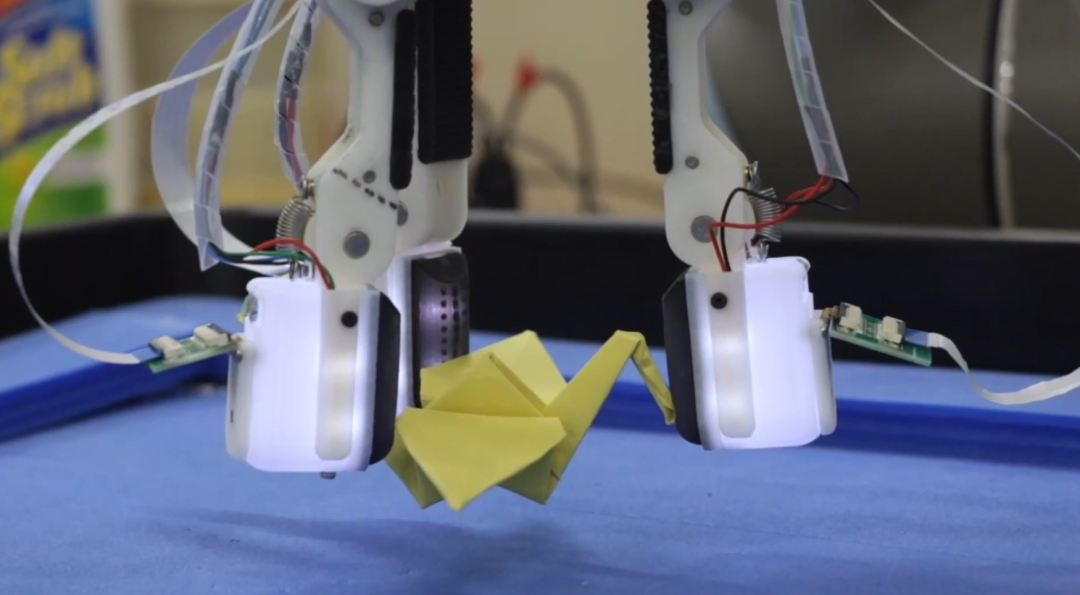2009年,布里斯托尔大学的研究人员设计的人工指尖,以人类皮肤为指导,通过手工组装的,约有一个汽水罐那么大。到2018年,改用3D打印,人工指尖及其所有部件做成成人大脚趾的大小并创造出一系列接近人类皮肤多层结构的层。最近,科学家们在指尖上加入了神经网络,称之为TacTip。这些神经网络可帮助机器人快速处理它所感应到的东西并作出相应的反应,就像一个真正的手指。 TacTip的等效信号来自橡胶表层下的一排针状突起,这些突起在表面被触碰时移动。针状突起类似于毛刷的刷毛,坚硬可弯曲。阵列下面有一个摄像头,可以检测到针脚何时以及如何移动。神经网络将这些信号转化为指尖的动作。 这项工作中,布里斯托尔大学的工程师Nathan Lepora及其同事对人工指尖进行了测试。测量了指尖接触灯芯绒状材料时相机的输出。团队在发表的《Journal of the Royal Society Interface》上的报告指出,人工指尖不仅能够检测到缝隙和脊背,而且它的输出跟接受同样测试的人类指尖的神经元信号模式密切相关。 但人工指尖并不像真正的人类指尖那样敏感。人类指尖可以检测到像铅笔的铅那样窄的缝隙,而TacTip需要两倍的宽度才能注意到它。但Lepora认为,等到团队开发出更薄的外表面就会提高人工指尖的精度。 Lepora的团队还为TacTip增加了更多的针脚和一个麦克风。麦克风模仿了人类皮肤深处的另一组神经末梢,这些神经末梢能感觉到振动,增强了我们感受表面粗糙程度的能力。 当研究人员测试增强的指尖对13种织物的区分能力时,来自麦克风和摄像机的信号模仿了人类手指在做这项测试时记录的信号。 配有TacTip的人工指尖可以帮助机器人探测、捡起和操纵物体。但目前还不清楚人工指尖能在多大程度上实现小型化。 Lepora对TacTip的缩小持乐观态度。随着摄像头和麦克风的尺寸逐渐变小,不断改进的3D打印技术使更薄的层成为可能。Lepora和Bensmaia都认为更小的设备可能更接近人类的“感觉”,能够检测到更精细的纹理从而更加灵巧。 康奈尔大学的材料科学家Robert Shepherd表示,人工指尖的研究展示了人类触觉的运作方式。Lepora和他的同事们基本上弄清了皮肤的神经末梢是如何反馈的,以使手指能够抓住一个从指间滑过的球或拿起一个折纸鹤而不把它压扁。 文章来源:cnBeta.COM |