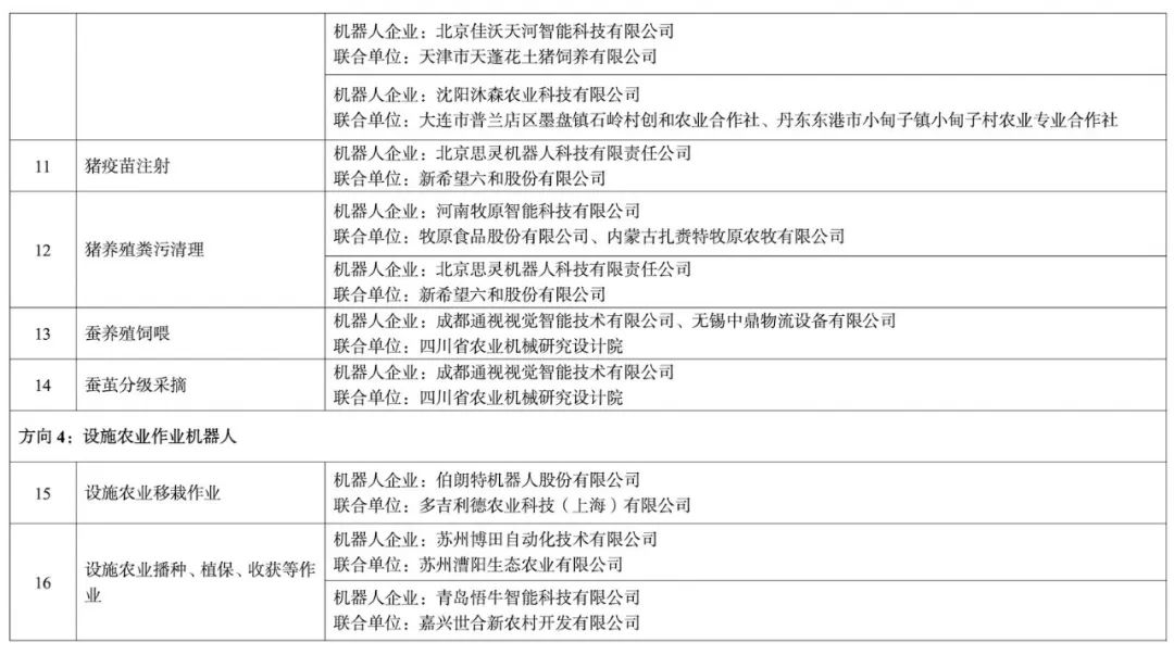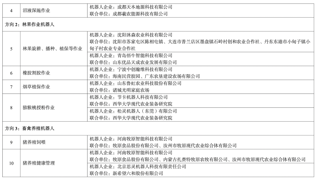 其中,农业领域机器人应用优秀场景21个,建筑领域机器人应用优秀场景11个,医疗领域机器人应用优秀场景25个,矿山领域机器人应用优秀场景20个。 (1)农业领域机器人应用优秀场景公示名单